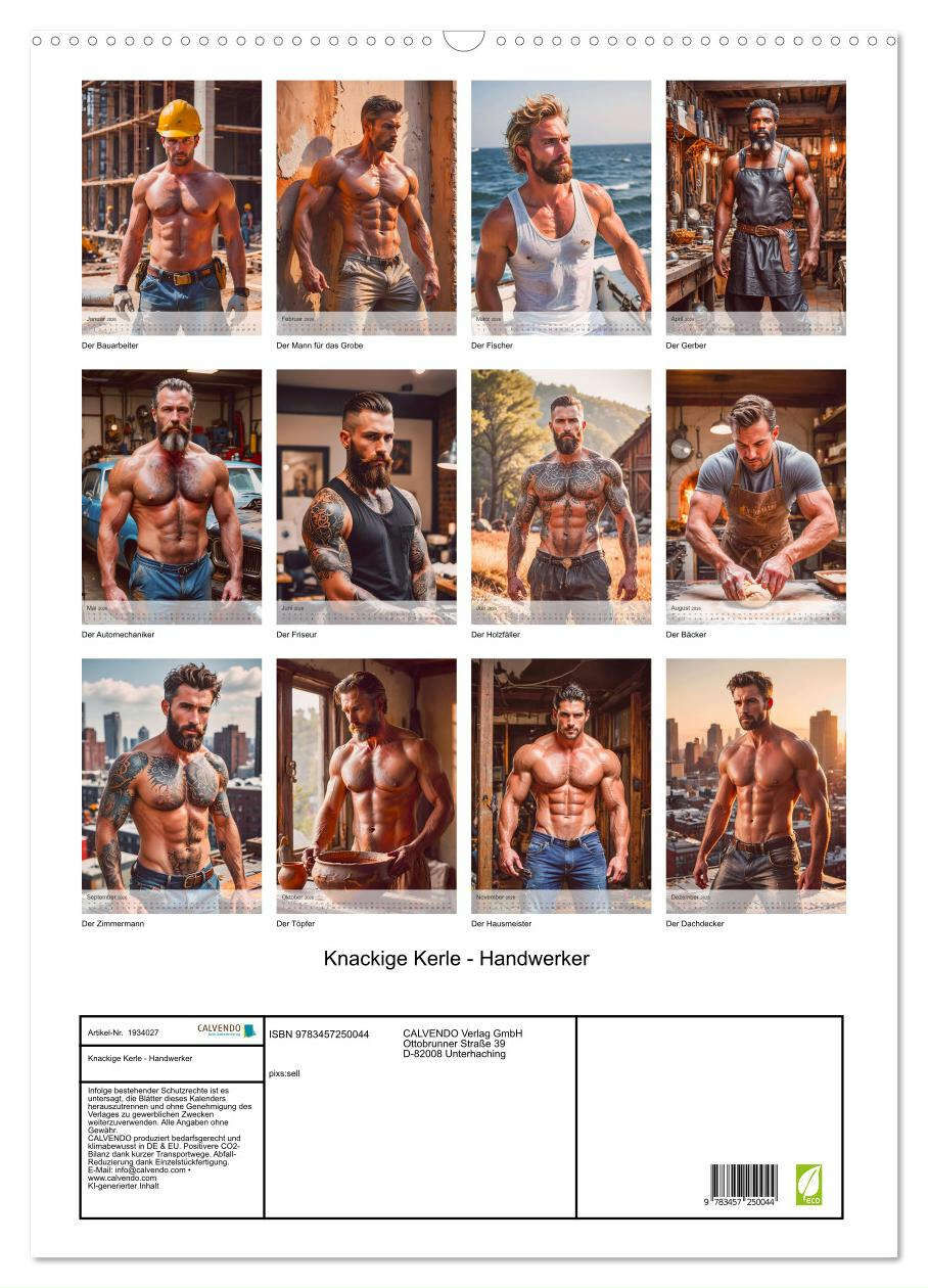 Der Kalender zeigt muskulöse Handwerker, die mit Werkzeugen und schwerer Arbeit ihre beeindruckende Stärke zur Schau stellen. Ihre kraftvollen Körper und minimalistische Kleidung verleihen den Bildern eine verführerische Ästhetik, die harte Arbeit mit Charme u...