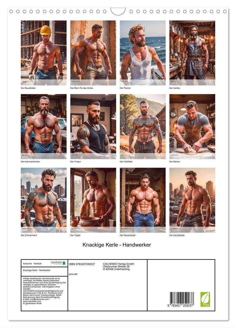 Der Kalender zeigt muskulöse Handwerker, die mit Werkzeugen und schwerer Arbeit ihre beeindruckende Stärke zur Schau stellen. Ihre kraftvollen Körper und minimalistische Kleidung verleihen den Bildern eine verführerische Ästhetik, die harte Arbeit mit Charme u...