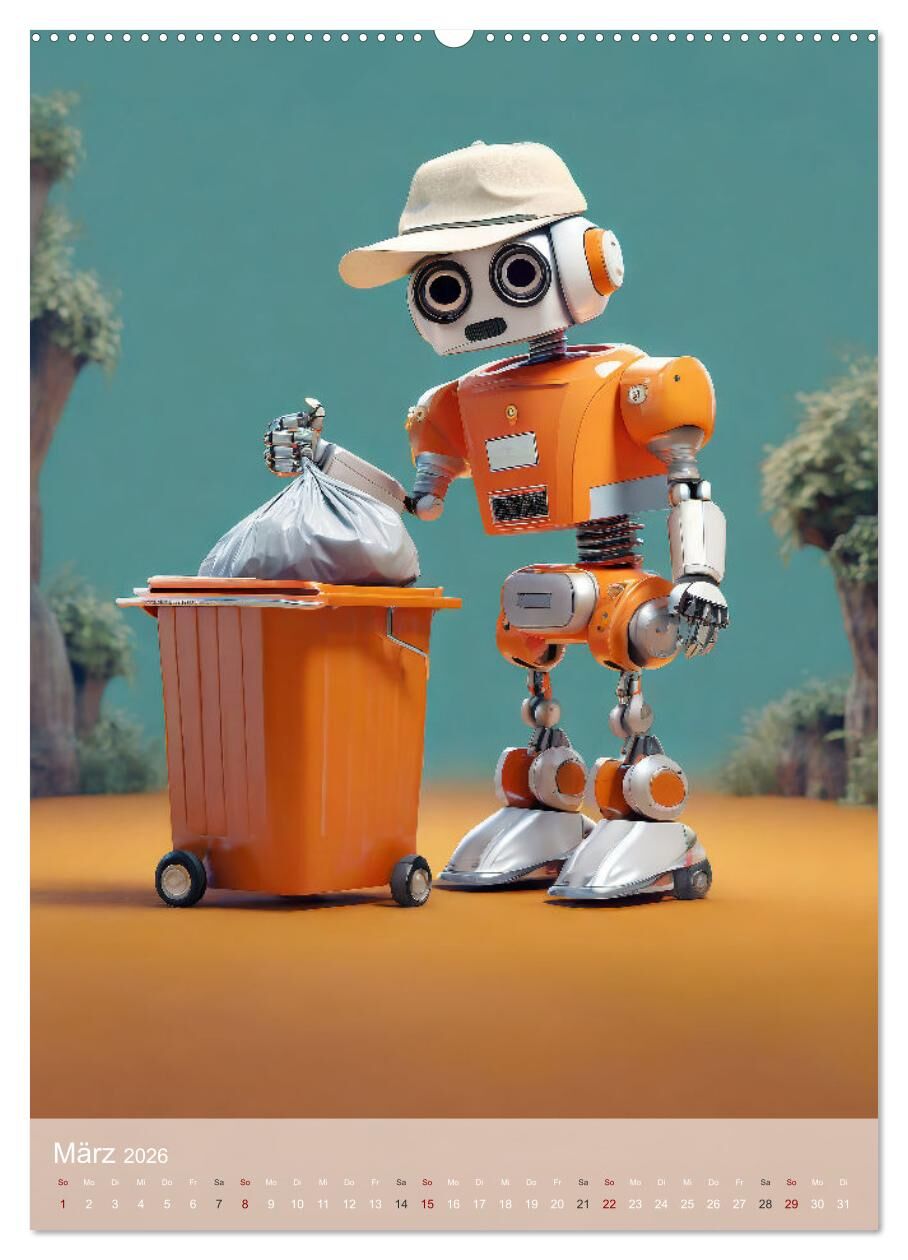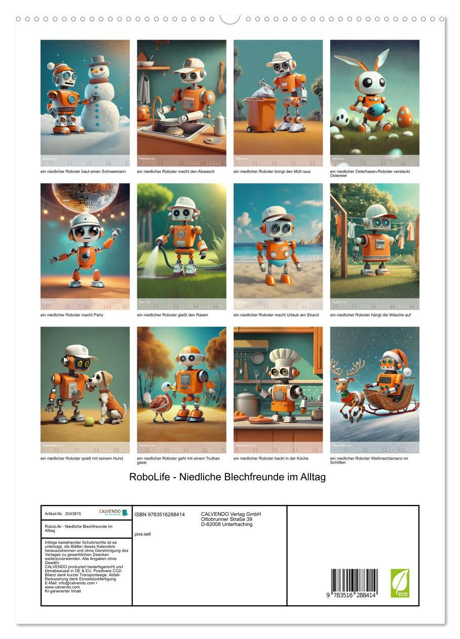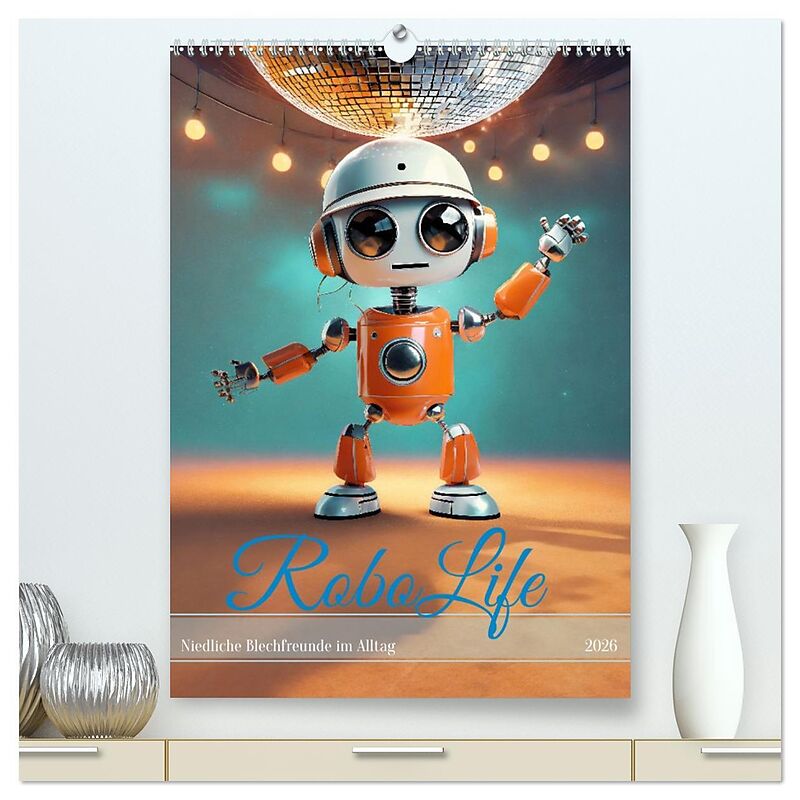 RoboLife - Niedliche Blechfreunde im Alltag (hochwertiger Premium Wandkalender 2026 DIN A2 hoch), Kunstdruck in Hochglanz