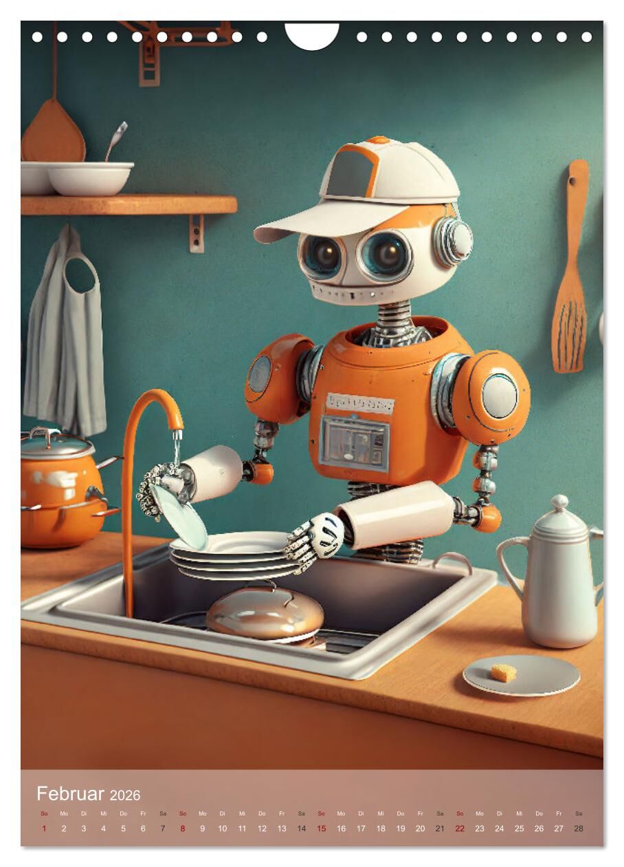 RoboLife - Niedliche Blechfreunde im Alltag (Wandkalender 2026 DIN A4 hoch), CALVENDO Monatskalender
