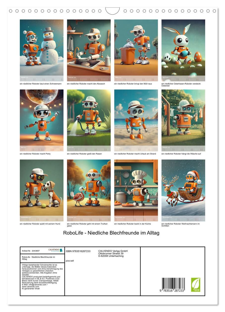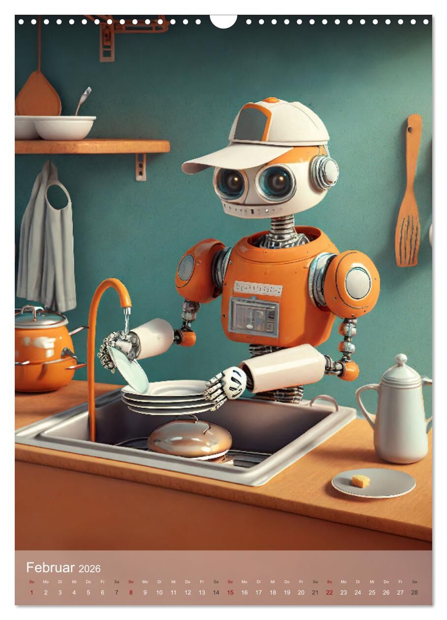RoboLife - Niedliche Blechfreunde im Alltag (Wandkalender 2026 DIN A3 hoch), CALVENDO Monatskalender
