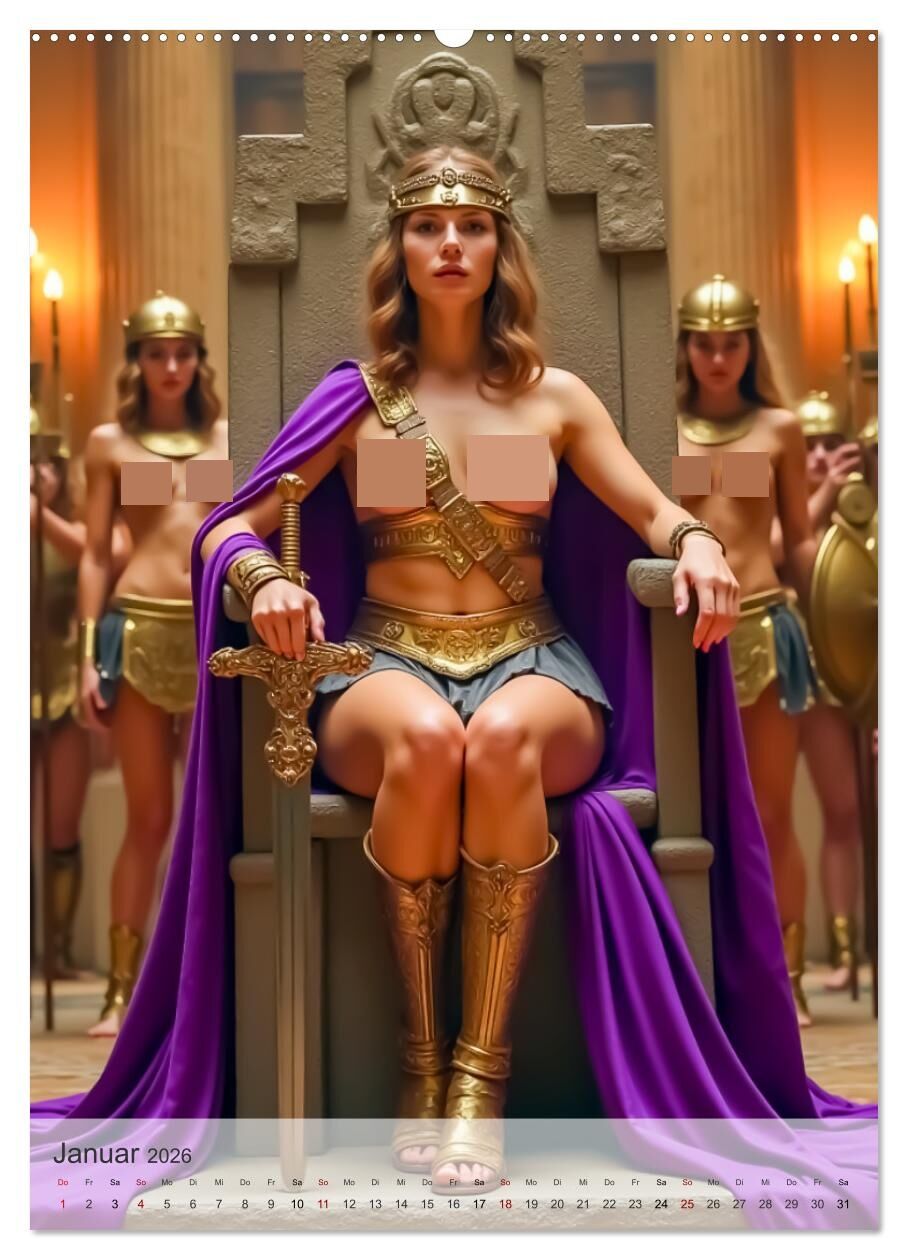 Der KI-Kalender inszeniert jeden Monat eine kraftvolle Frau als erotische Kriegerin mal als fesselnde Herrscherin in Leder und Ketten, mal als verführerische Kämpferin in dunkler Fantasy-Rüstung. Wild, ungezähmt, sinnlich eine Hommage an weibliche Dominanz im ...