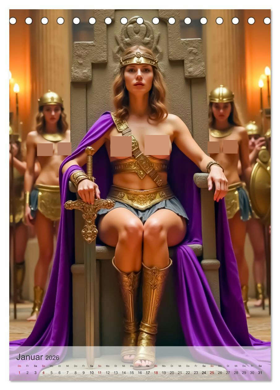 Der KI-Kalender inszeniert jeden Monat eine kraftvolle Frau als erotische Kriegerin mal als fesselnde Herrscherin in Leder und Ketten, mal als verführerische Kämpferin in dunkler Fantasy-Rüstung. Wild, ungezähmt, sinnlich eine Hommage an weibliche Dominanz im ...