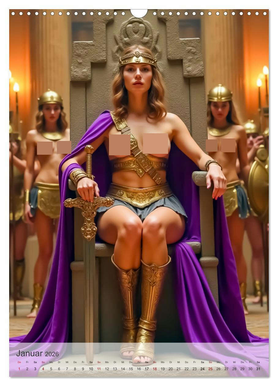 Der KI-Kalender inszeniert jeden Monat eine kraftvolle Frau als erotische Kriegerin mal als fesselnde Herrscherin in Leder und Ketten, mal als verführerische Kämpferin in dunkler Fantasy-Rüstung. Wild, ungezähmt, sinnlich eine Hommage an weibliche Dominanz im ...