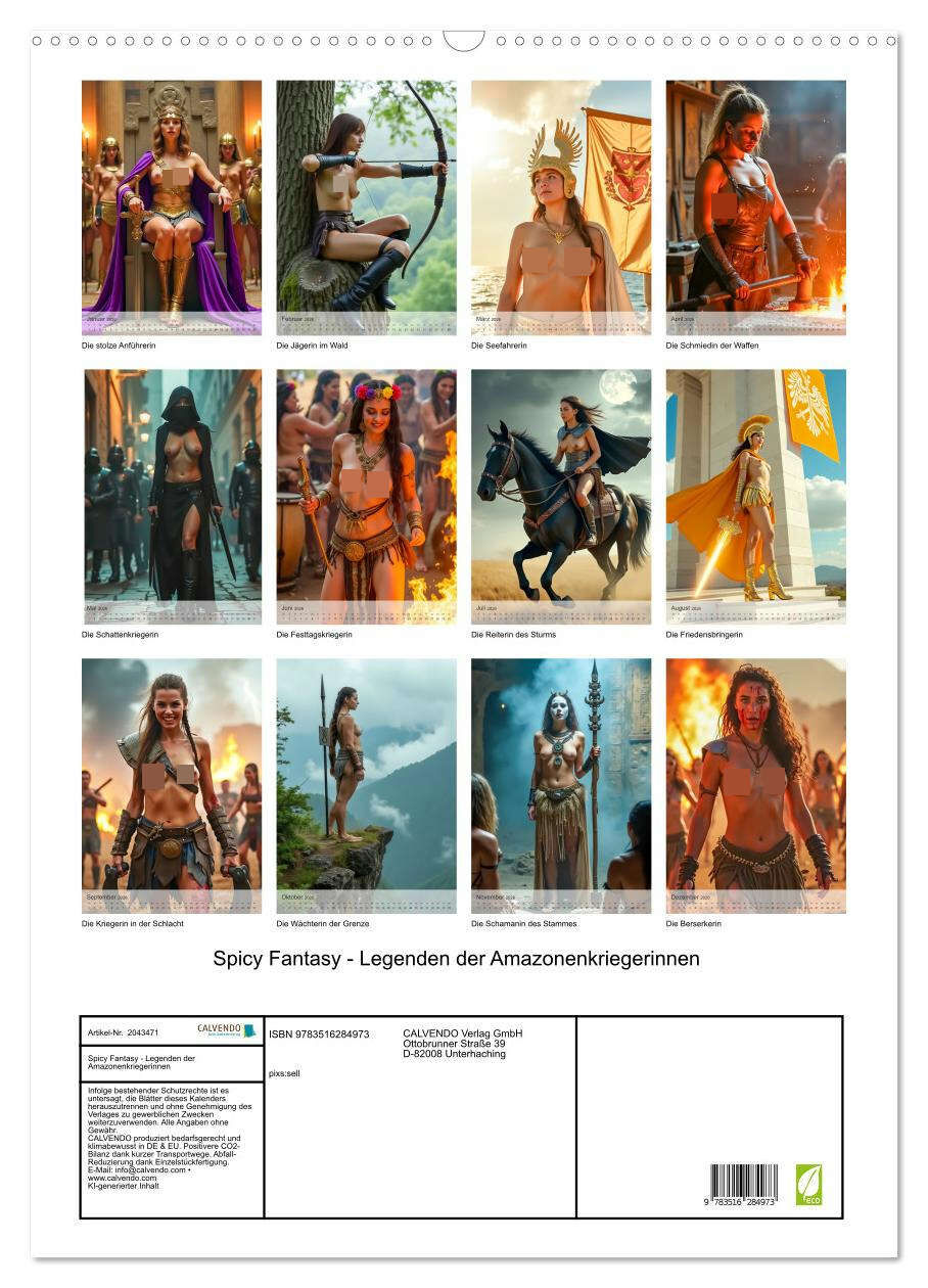 Der KI-Kalender inszeniert jeden Monat eine kraftvolle Frau als erotische Kriegerin mal als fesselnde Herrscherin in Leder und Ketten, mal als verführerische Kämpferin in dunkler Fantasy-Rüstung. Wild, ungezähmt, sinnlich eine Hommage an weibliche Dominanz im ...