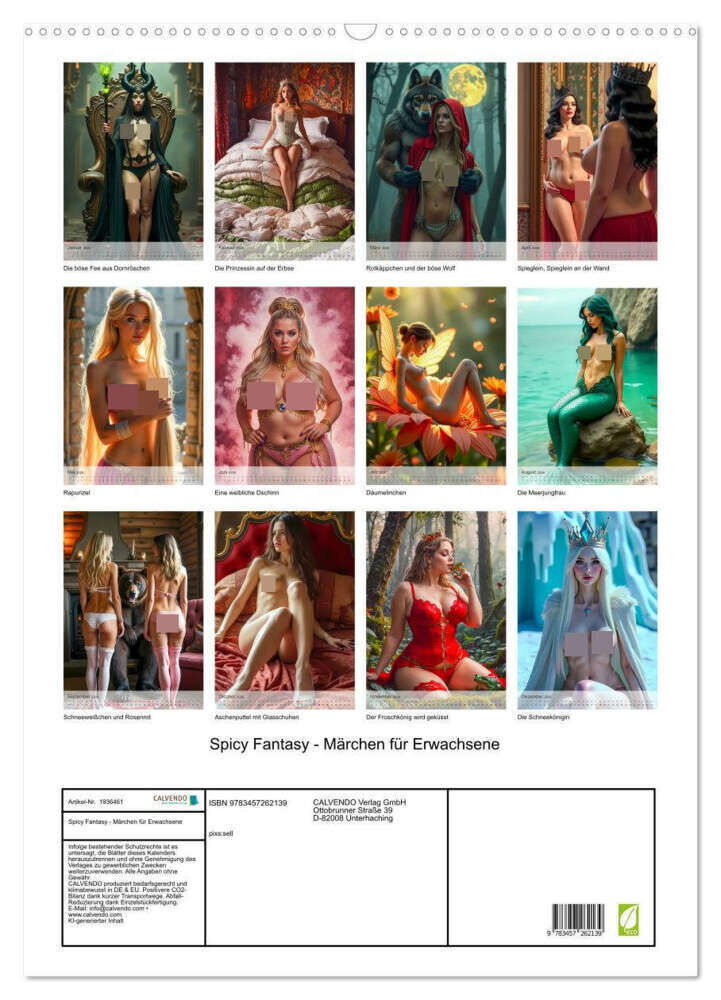 Ein frecher und verführerischer Märchenkalender, in dem bekannte Prinzessinnen und Fabelwesen ihre Hüllen fallen lassen und mit einer guten Portion Humor in sinnlichen, fantasievollen KI-Szenen neu interpretiert werden.