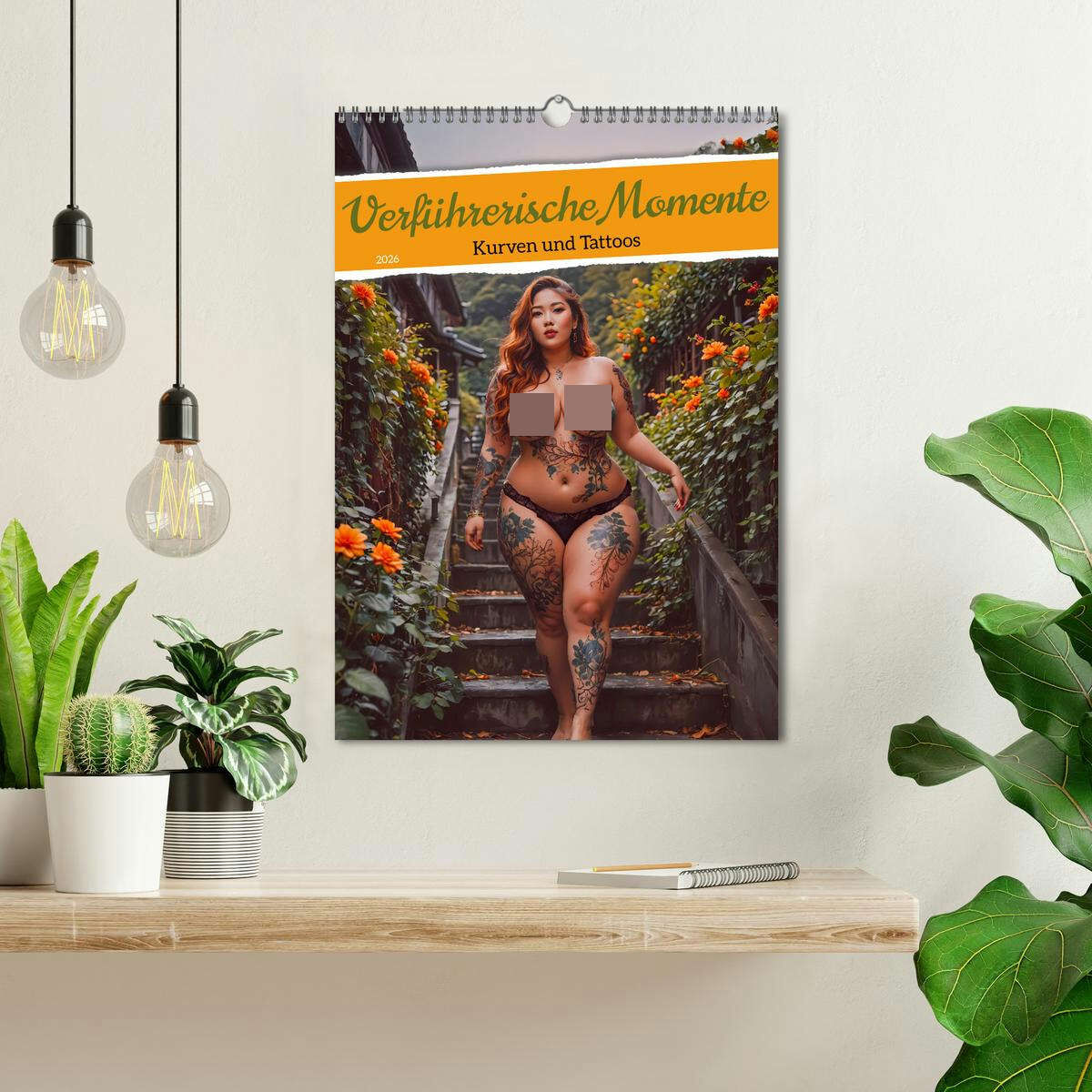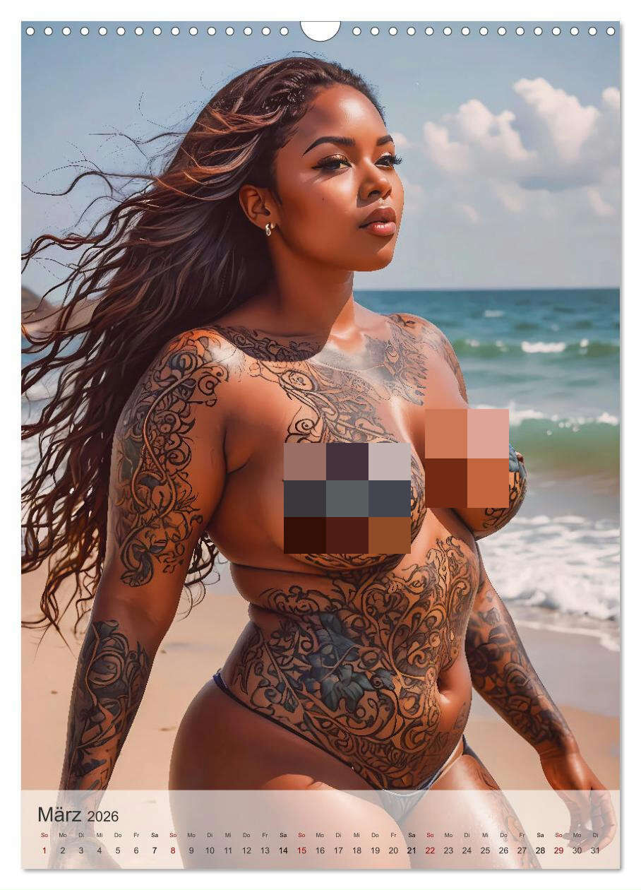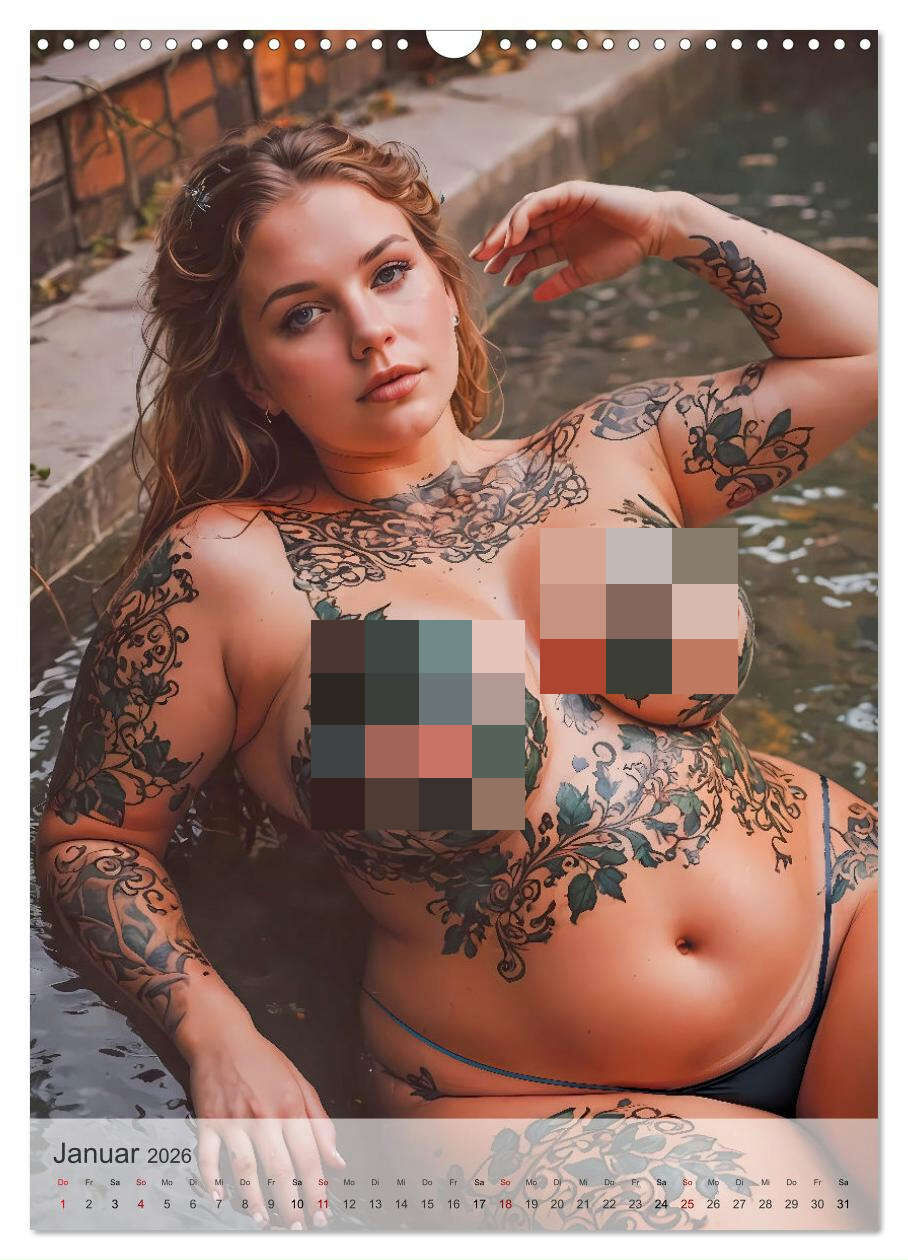 Dieser KI Kalender rückt kurvige Frauen mit beeindruckenden Tattoos in den Fokus, die in anspruchsvollen und kunstvollen Posen inszeniert werden. Jede Seite zelebriert die Verbindung von Körpervielfalt, Tattoo-Kunst und der Eleganz dynamischer Körperhaltung.