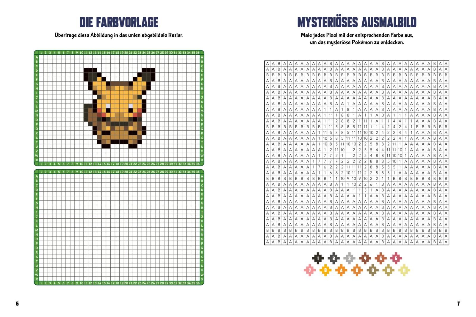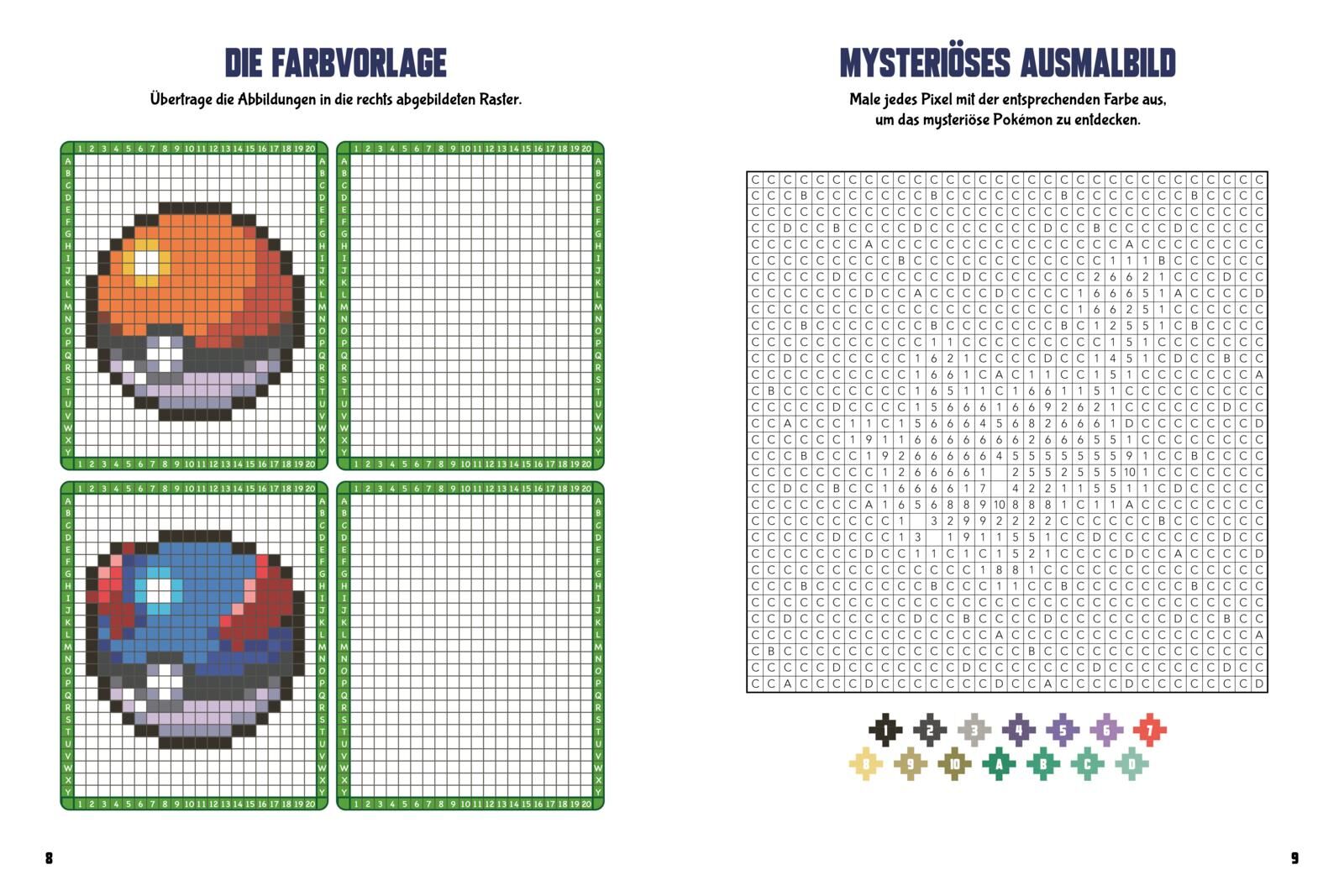 Malspaß ab 5 Jahren! Mit einer Vielzahl von farbigen Vorlagen bietet dieses Malbuch die Möglichkeit, die beliebten Pokémon-Charaktere in lebendigen Pixelkunstwerken zum Leben zu erwecken! Jede Seite dieses Malbuchs ist gefüllt mit Darstellungen deiner Lieblin...