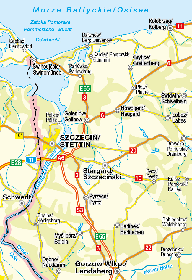 Straßenkarte 1:200 000 - 2-sprachig bis ins Detail - Mit separatem Ortsnamenregister polnisch-deutsch / deutsch-polnisch - Innenstadtplan Szczecin / Stettin - Mit Lupe - Mit Reisetipp - Übersichtskarte Polen 1:4 Millionen