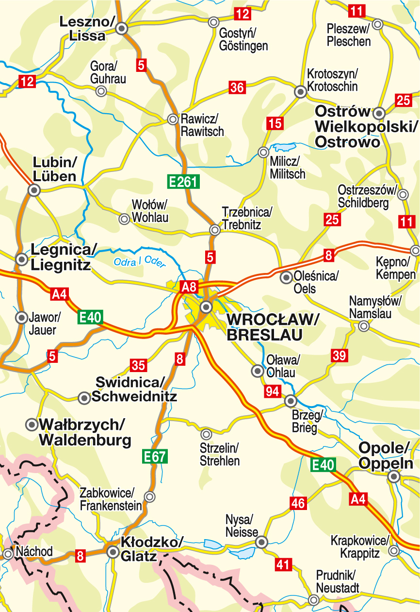 Straßenkarte 1:200 000 - 2-sprachig bis ins Detail - Mit separatem Ortsnamenregister deutsch-polnisch - Innenstadtplan Wrocaw / Breslau - Mit Lageplan des Fussballstadions in Wroclaw / Breslau - Mit Lupe - Mit Reisetipp - Übersichtskarte Polen 1:4 Millionen