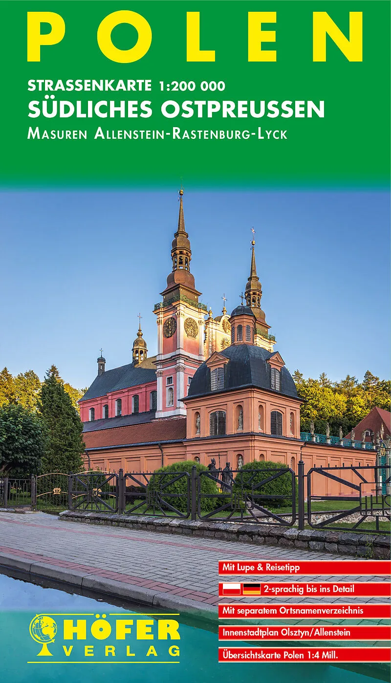 Straßenkarte 1:200 000 - 2-sprachig bis ins Detail - Mit separatem Ortsnamenregister polnisch-deutsch / deutsch-polnisch - Innenstadtplan Olsztyn / Allenstein - Mit Lupe - Mit Reisetipp - Übersichtskarte Polen 1:4 Millionen
