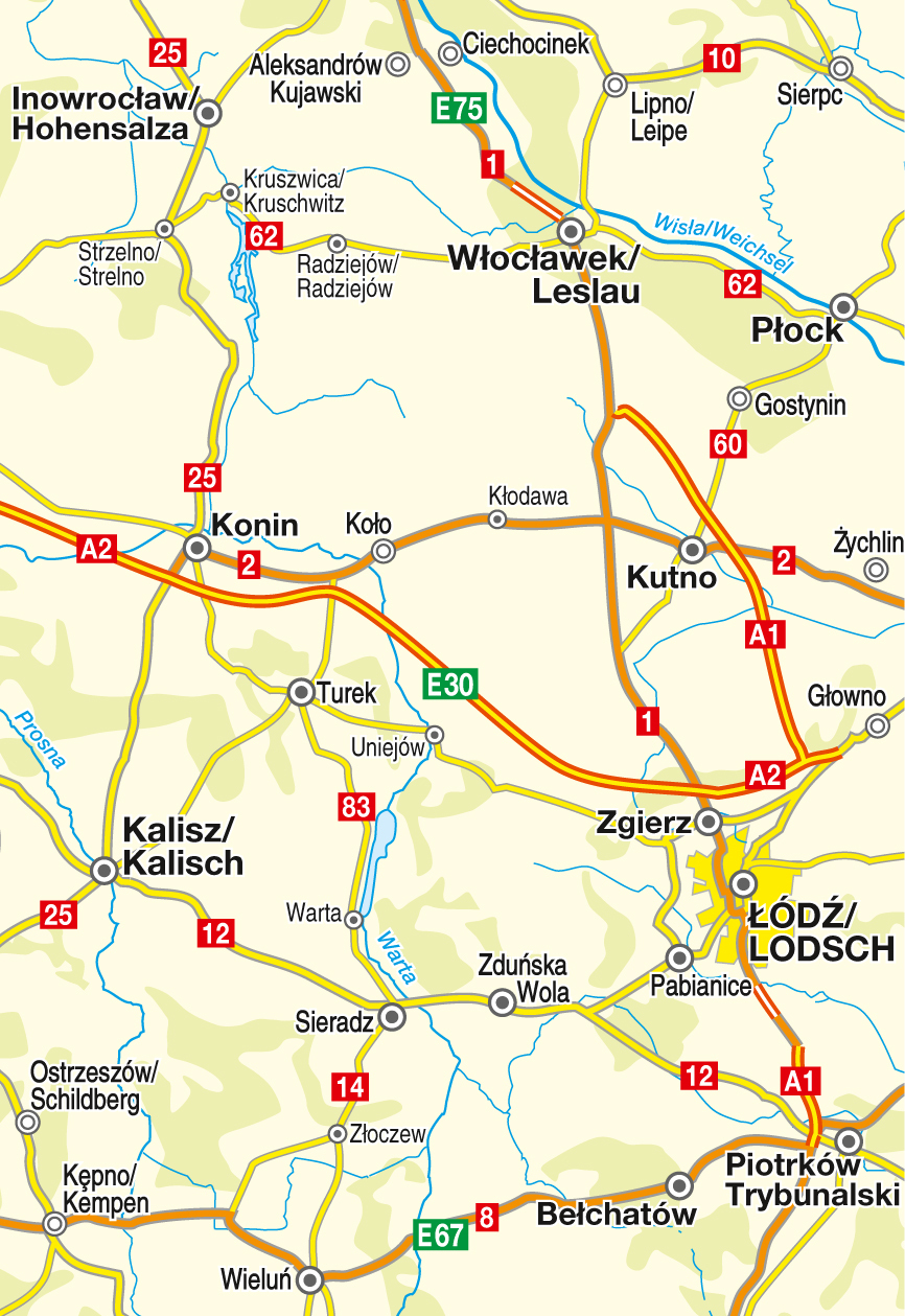 Straßenkarte 1:200 000 - 2-sprachig bis ins Detail - Mit separatem Ortsnamenregister polnisch-deutsch / deutsch-polnisch - Innenstadtplan ód / Lodsch - Mit Lupe - Übersichtskarte Polen 1:4 Millionen