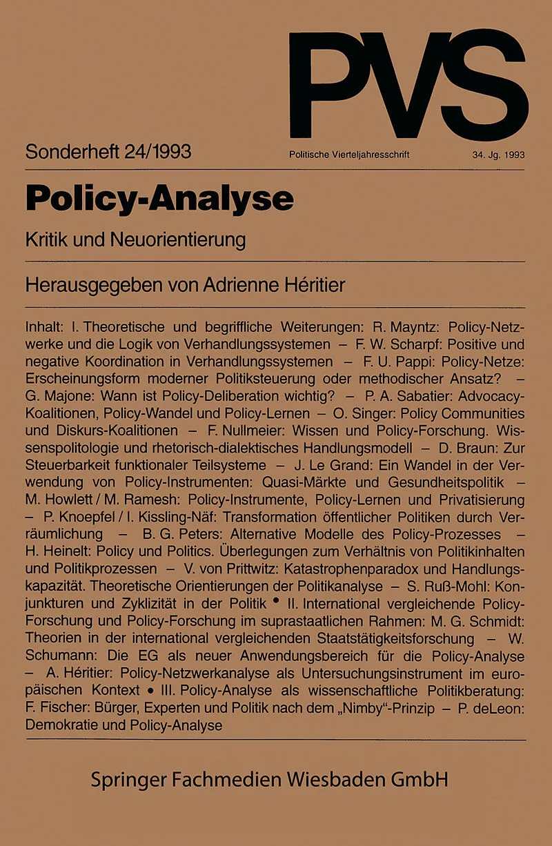 Autorentext Dr. Adrienne Héritier ist Professorin für Politikwissenschaft an der Universität Bielefeld. Klappentext Die Policy-Analyse, die sich wesentlich mit Fragen der politischen Steuerung und der Gestaltung gesellschaftlichen Wandels befaßt, befindet sich...
