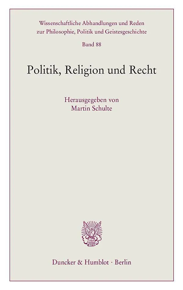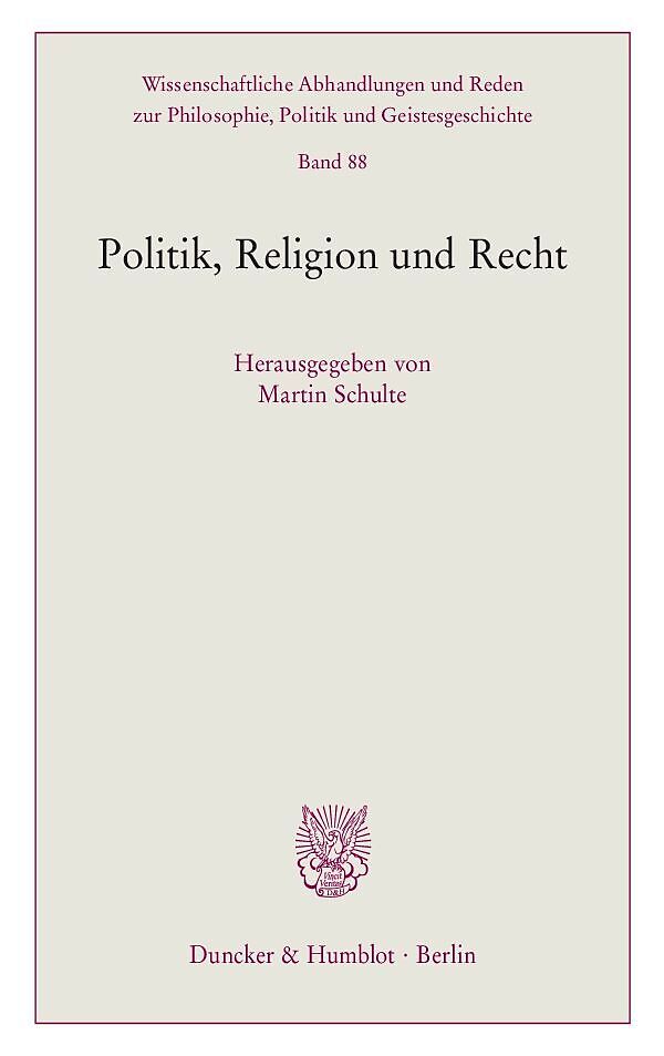Der Sammelband unternimmt den Versuch, das Verhältnis von Politik, Religion und Recht unter besonderer Berücksichtigung der Evolution von staatlichem und kirchlichem Recht der christlichen Kirchen zu analysieren. Dabei werden die Wechselwirkungen von Politik, ...