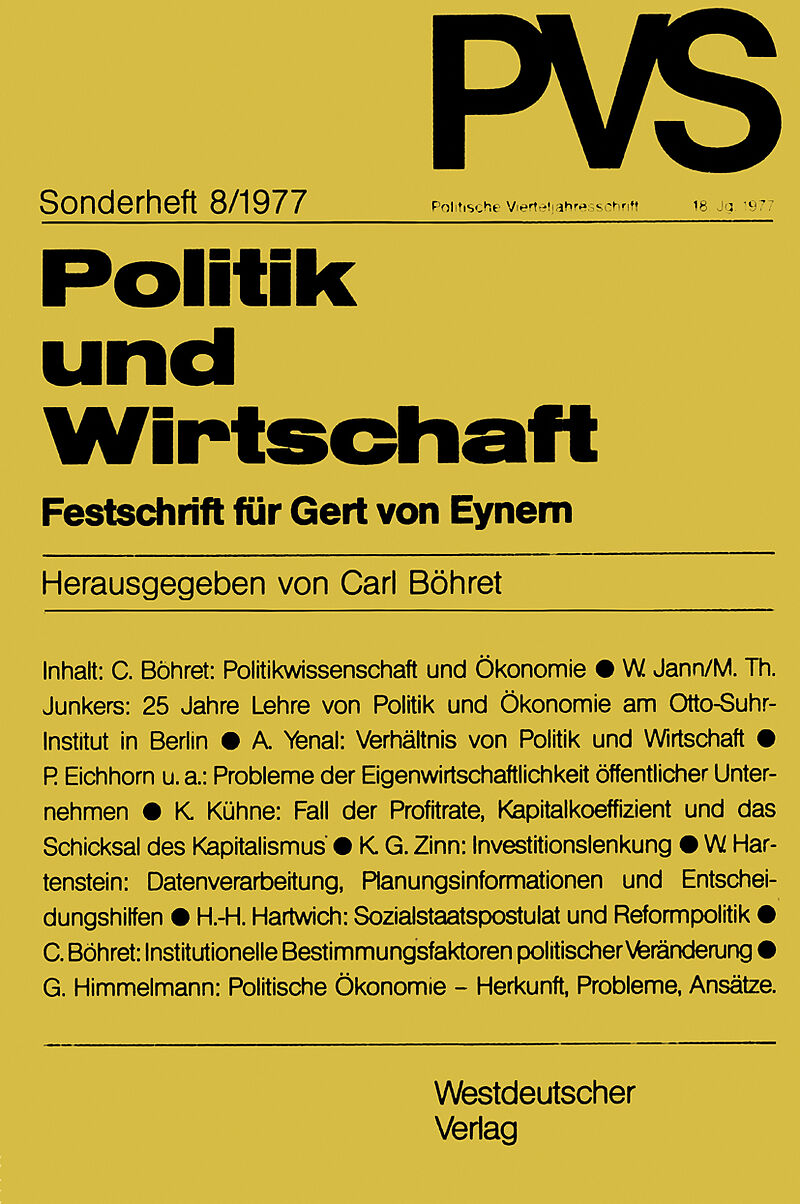 Interdependenzen von Politik und Wirtschaft. Beitrage zur Politischen Wirtschaftslehre. Fest gabe fUr Gert von Eynern, h rsg. von Carl Babret und Dieter Grosser, Berlin 1967 (638 S.). Vgl. ferner tiber Gert von Eynern: Die Hochschullehrer der Wirtschaftswissen...