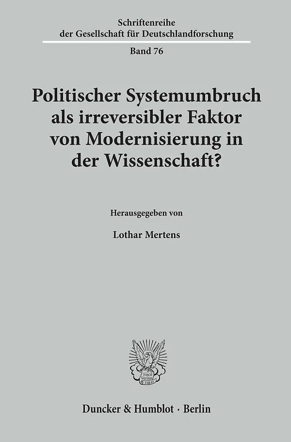 Ziel der interdisziplinär ausgerichteten geisteswissenschaftlichen Tagung vom 6. bis 9. April 1998 in der Akademie für politische Bildung Tutzing war es, beispielhaft zu untersuchen, welche Bedeutung und Dynamik einem politischen Systemumbruch bei der Modernis...
