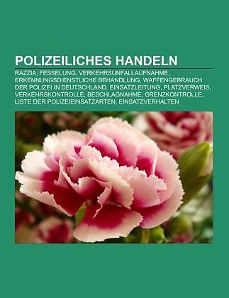 Quelle: Wikipedia. Seiten: 182. Nicht dargestellt. Kapitel: Razzia, Fesselung, Erkennungsdienstliche Behandlung, Waffengebrauch der Polizei in Deutschland, Verkehrsunfallaufnahme, Platzverweis, Einsatzleitung, Verkehrskontrolle, Beschlagnahme, Grenzkontrolle, Liste der Polizeieinsatzarten, Einsatzverhalten, Legalitätsprinzip, Polizeiliche Taktik, Kriminalitätsbekämpfung im unbaren Zahlungsverkehr durch Nutzung nichtpolizeilicher Organisationen, Antreten, Deutscher Präventionstag, Kriminalprävention, Polizeiliche Kriminalprävention der Länder und des Bundes, Drohwirkung, Guter Bulle, böser Bulle, Personengewahrsam, Hamburger Kessel, Gefahrenabwehr, Crowd and Riot Control, Festnahmetechnik, Standkontrolle, Kontrollpunkt, Verfolgungsfahrt, Fahrbahnsperrung, Gewahrsamstod, Vorladung, Leibesvisitation, Monobild NRW, Personenkontrolle, Unfallmeldung, Polizeidienstkunde, Haft-Entlassenen-Auskunfts-Datei-Sexualstraftäter, Zivilstreife, Aha-Konzept, Keuschheitsprobe, Arrestantenlähmung, Räumung, Polizeikontrolle, Einsatzstelle, Unfallphotogrammetrie, Munitionsaufklärung, Kriminalitätsvorbeugung. Auszug: Die Fesselung ist der Vorgang oder das Ergebnis des Fesselns einer Person oder eines Tieres mit dem Ziel der Bewegungseinschränkung. Dies geschieht durch Zusammenbinden der Extremitäten (Arme, Beine) und/oder Festbinden des Gefesselten oder bestimmter Körperteile desselben an fixen Gegenständen. Traditionelle Hilfsmittel hierzu sind Seile, Handschellen, Fußfesseln, Daumenschellen, Bänder, Riemen oder Ketten. Fesselungen können zu erheblichen körperlichen Schmerzen bis hin zu Verletzungen führen, wenn die Fesseln sehr eng und hart sind und/oder die Fesselung über einen langen Zeitraum andauert. Bei einer Einschränkung der Atmungsaktivität kann eine Fesselung zum Tod führen. Gefesselte Personen sind grundsätzlich zu beaufsichtigen, sie dürfen nicht über längere Zeiträume allein gelassen werden. Die Fesselung (auch Stillstellung) einer Person kann durch Privatpersonen oder durch Amtsträger erfolgen. Die Zielrichtung ist die Gefahrenabwehr, der Strafvollzug oder die Strafverfolgung. Sie stellt eine Art des Unmittelbaren Zwanges zur Durchsetzung einer Maßnahme dar. Der Grund für eine Fesselung ist der Selbst- und Fremdschutz sowie die Verhinderung der Flucht. Im deutschen Strafprozessrecht soll der Angeklagte bei der Hauptverhandlung nicht gefesselt sein. Erfolgt die Fesselung durch eine Privatperson, ist sie nur in den seltensten Fällen gerechtfertigt und damit im Regelfall strafbar. Es existieren unterschiedliche Gründe, die zu einer Fesselung führen. Häufig ist nicht nur ein einzelner Grund die Ursache für die Fesselung, sondern eine Kombination aus mehreren Gründen. Gefangenen werden Fesseln angelegt, um sie an der Flucht zu hindern. Dazu wird die Möglichkeit, sich selbst von der Stelle zu bewegen, entweder eingeschränkt (zum Beispiel durch Anlegen von Hand- und/oder Fußschellen) oder vollständig entzogen (durch Fesselungen, die das eigenständige Laufen unmöglich machen (zum Beispiel den hog tie, siehe unten), oder durch Fesseln des Gefangenen an einen Gegenstand, zu