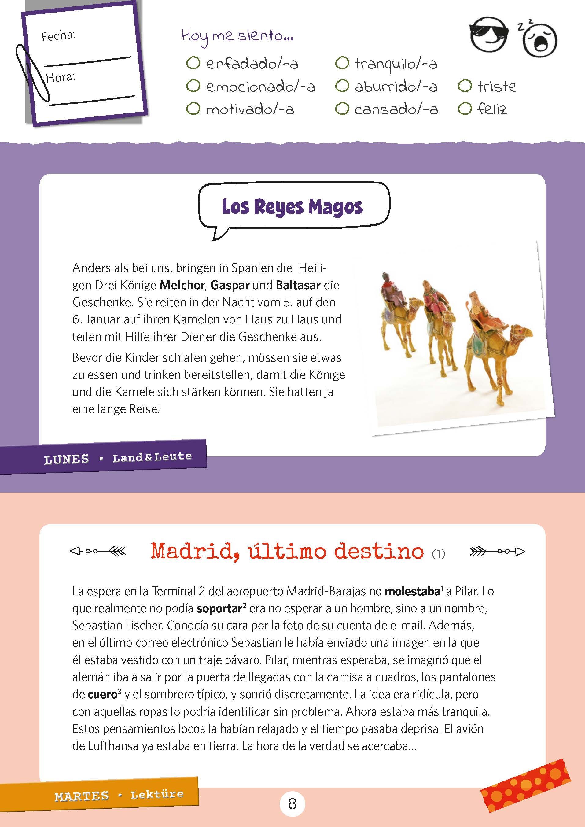 Jeden Tag ein bisschen Spanisch lernen? Mit Vergnügen! Interessantes über Land und Leute, unterhaltsame Lesetexte, Grammatik und Wortschatz, Witze und zum Abschluss fürs Wochenende etwas Kulinarisches: Nimm dir täglich deine kleine Auszeit und erweitere so ef...