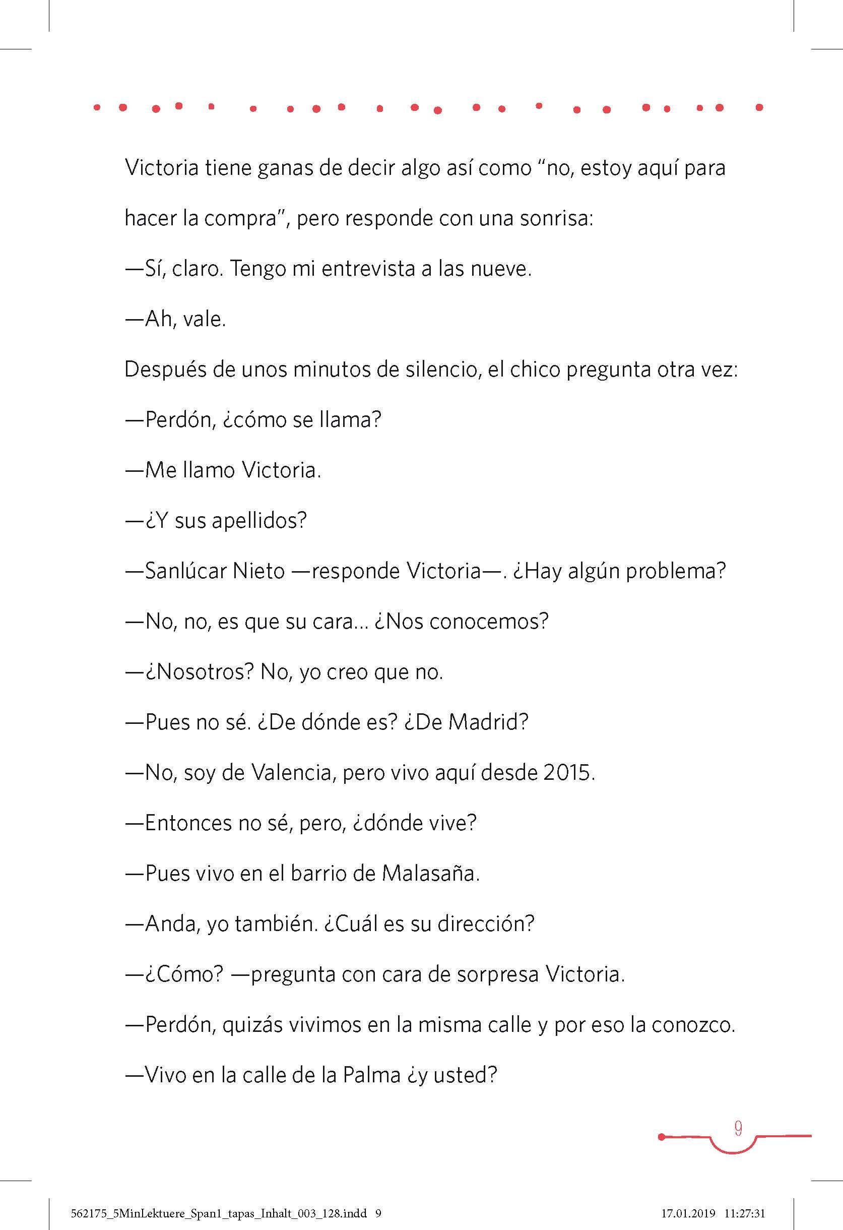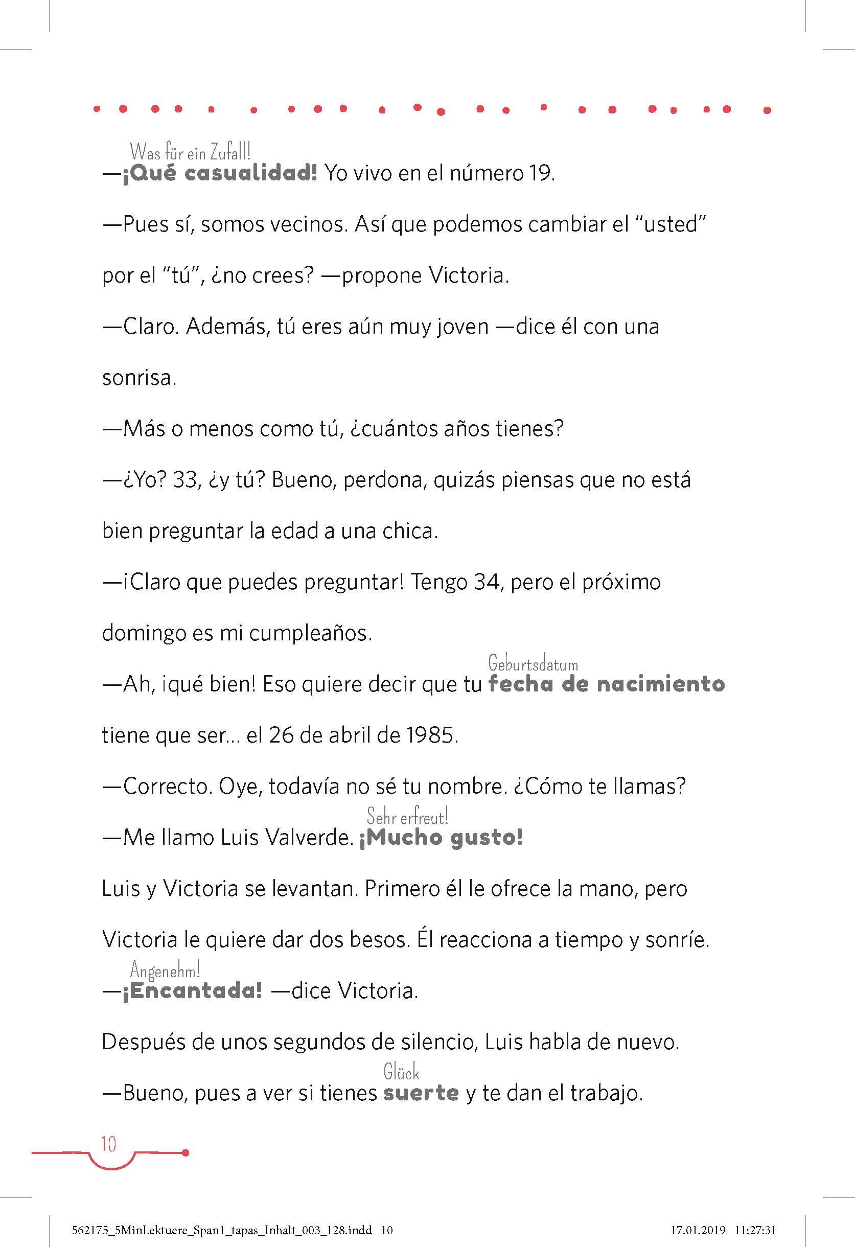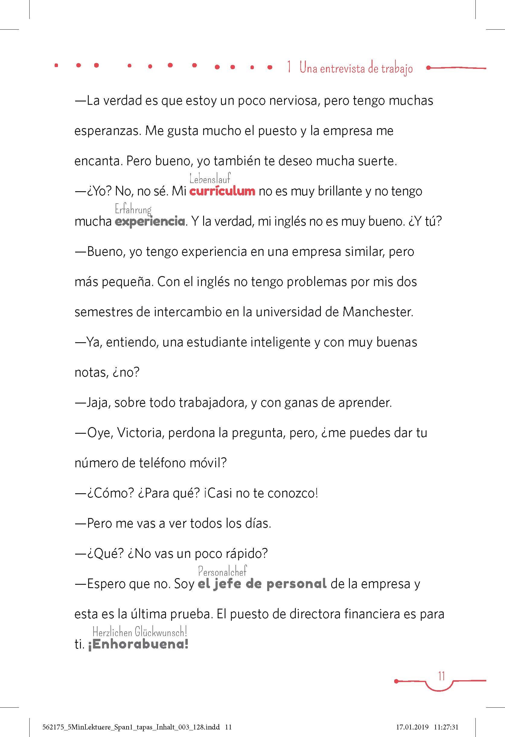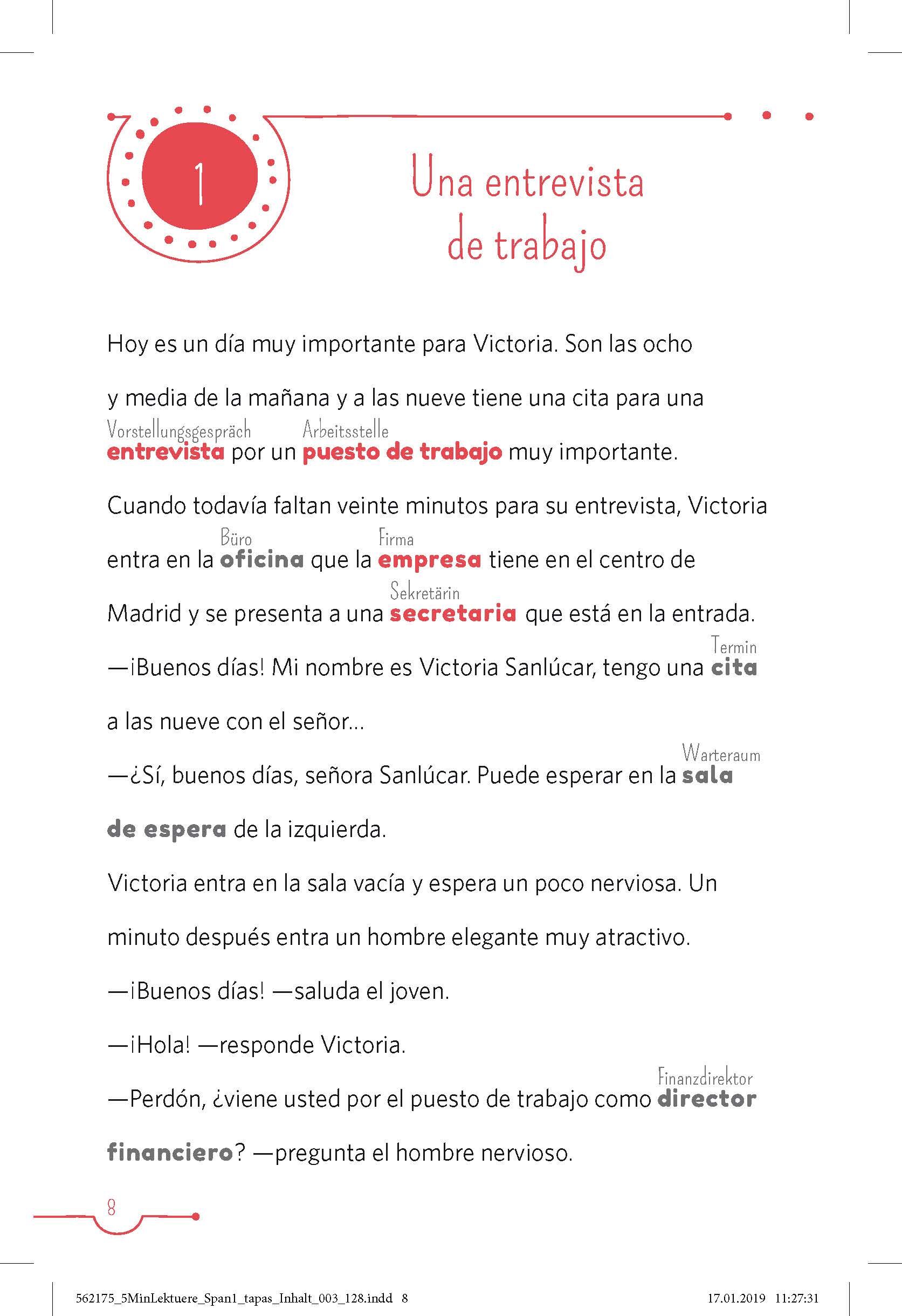 Haben Sie mal 5 Minuten? - Dann lesen Sie los! Lernen Sie mit 20 kurzen und einfachen Geschichten Spanien und seine Bewohner kennen. Unbekannte Wörter? Kein Problem. Erschließen Sie neue Wörter und Wortfamilien mit anschaulichen und liebevoll illustrierten Mi...