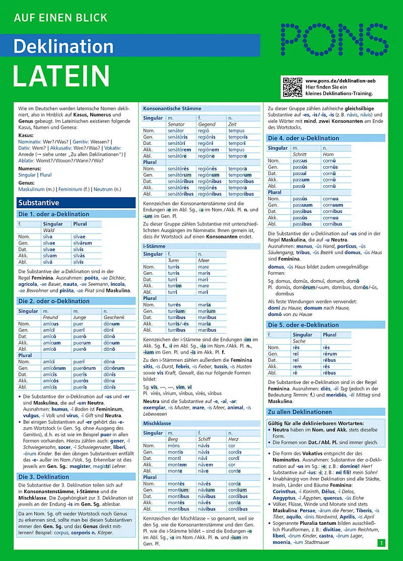 Leichtes Lernen: Aufklappen und Bescheid wissen Die kompakte Übersicht zu allem, was man über die Deklination in Latein wissen muss Auf einen Blick parat: Deklinationsmuster lernen, ohne lange in einem Grammatikbuch an verschiedenen Stellen suchen zu müssen O...