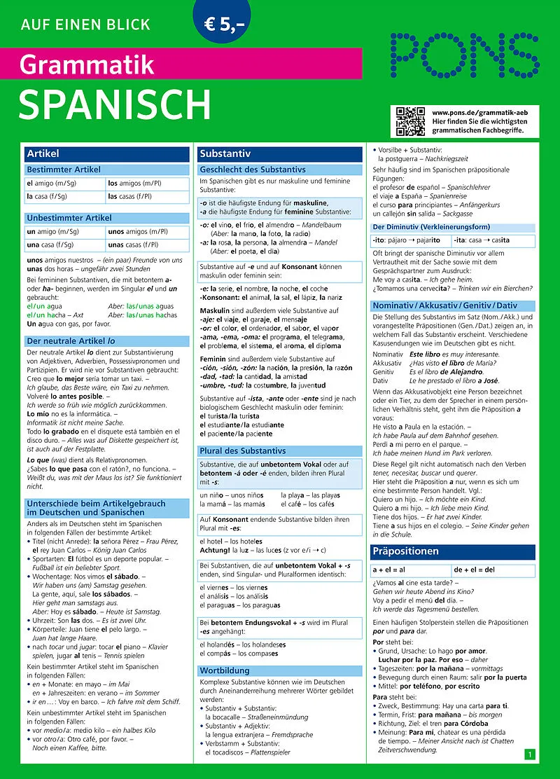 Die ganze spanische Grammatik auf einen Blick Alle wichtigen grammatischen Themen auf einen Blick zum schnellen Nachschlagen und Lernen. Alle wichtigen grammatischen Fachbegriffe mit Definitionen und Beispielen zum Herunterladen und Ausdrucken. Aus strapazier...