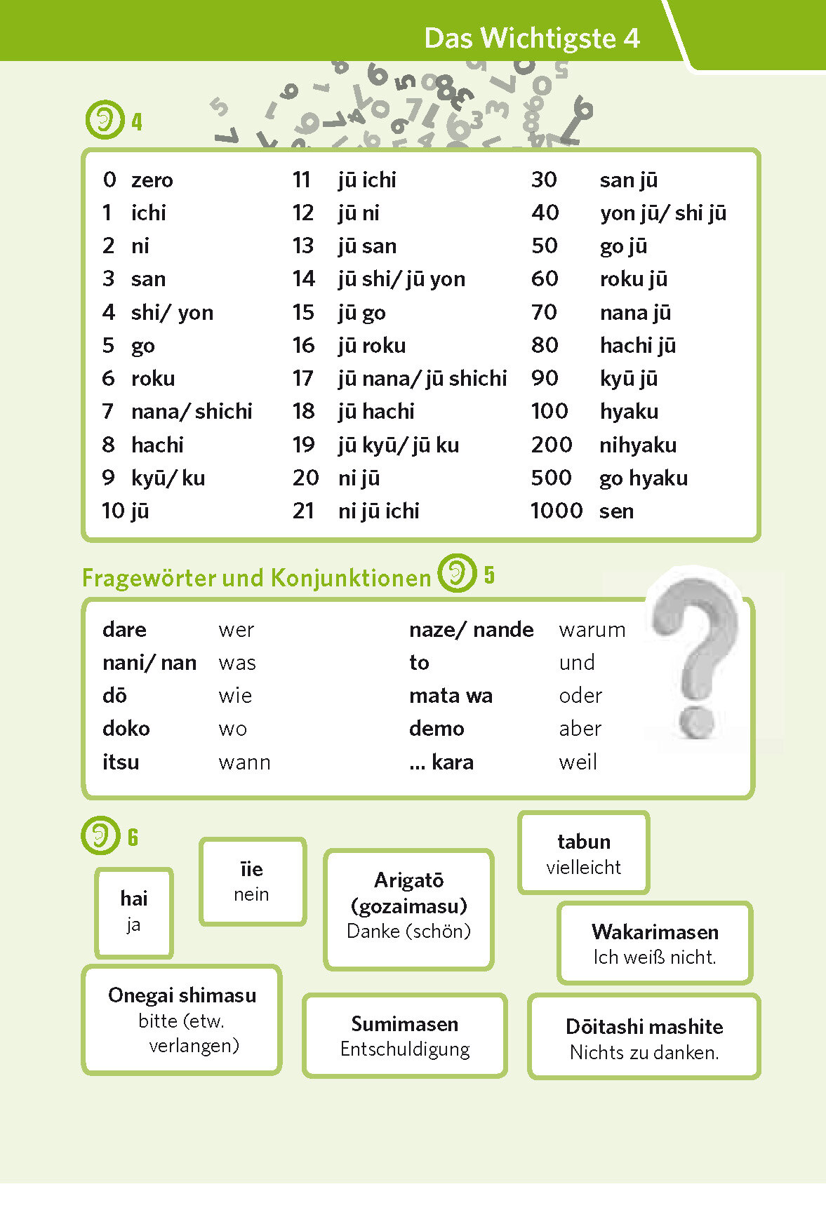 Japanisch lernen in kleinen Portionen In 25 Mini-Lektione n lernen Sie alles, was Sie für die ersten Gespräche auf Japanisch brauchen. Die MITREDEN!-Seiten geben Ihnen den Überblick über das Allerwichtigste , damit Sie schon nach kurzer Zeit mitreden können. ...