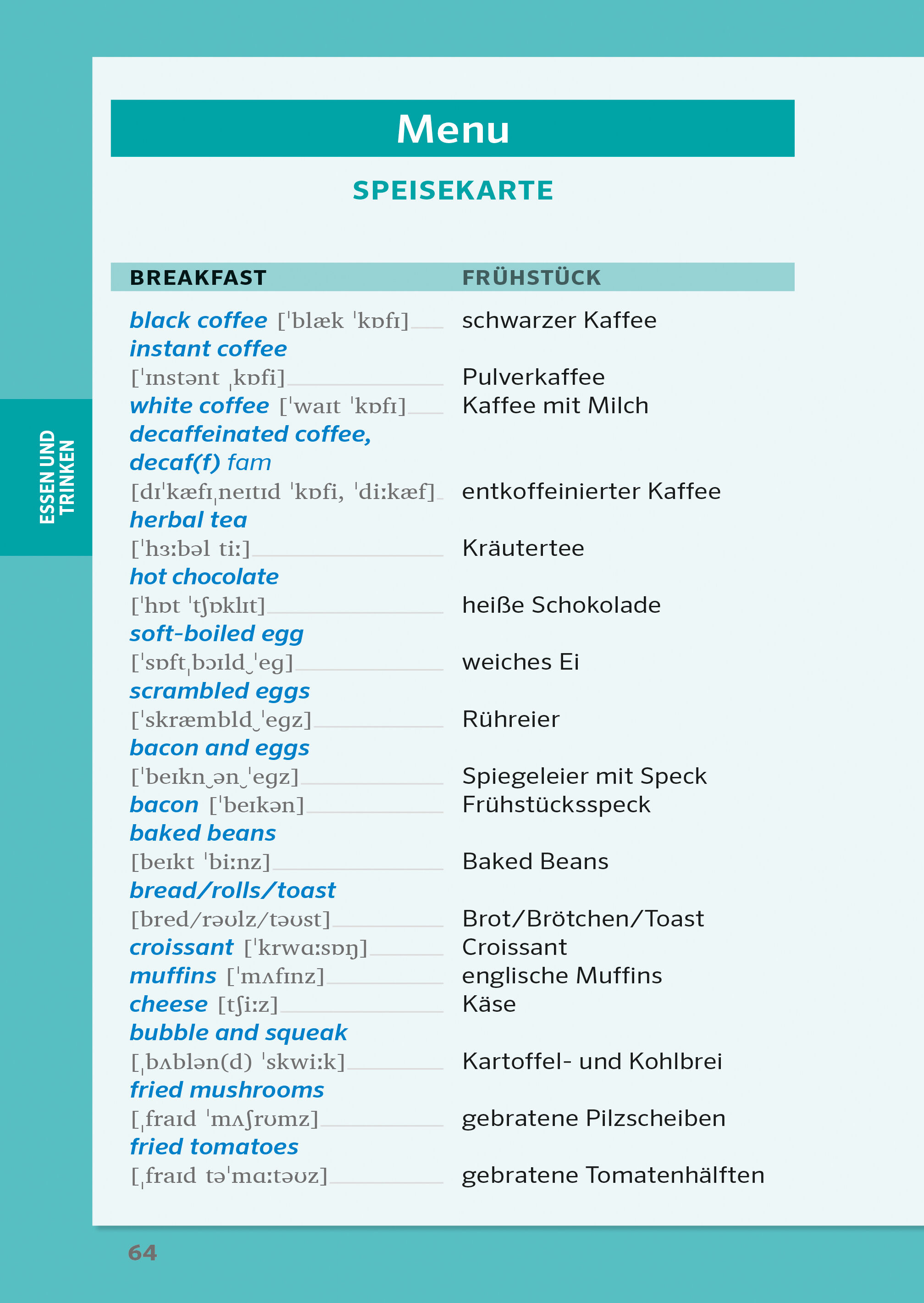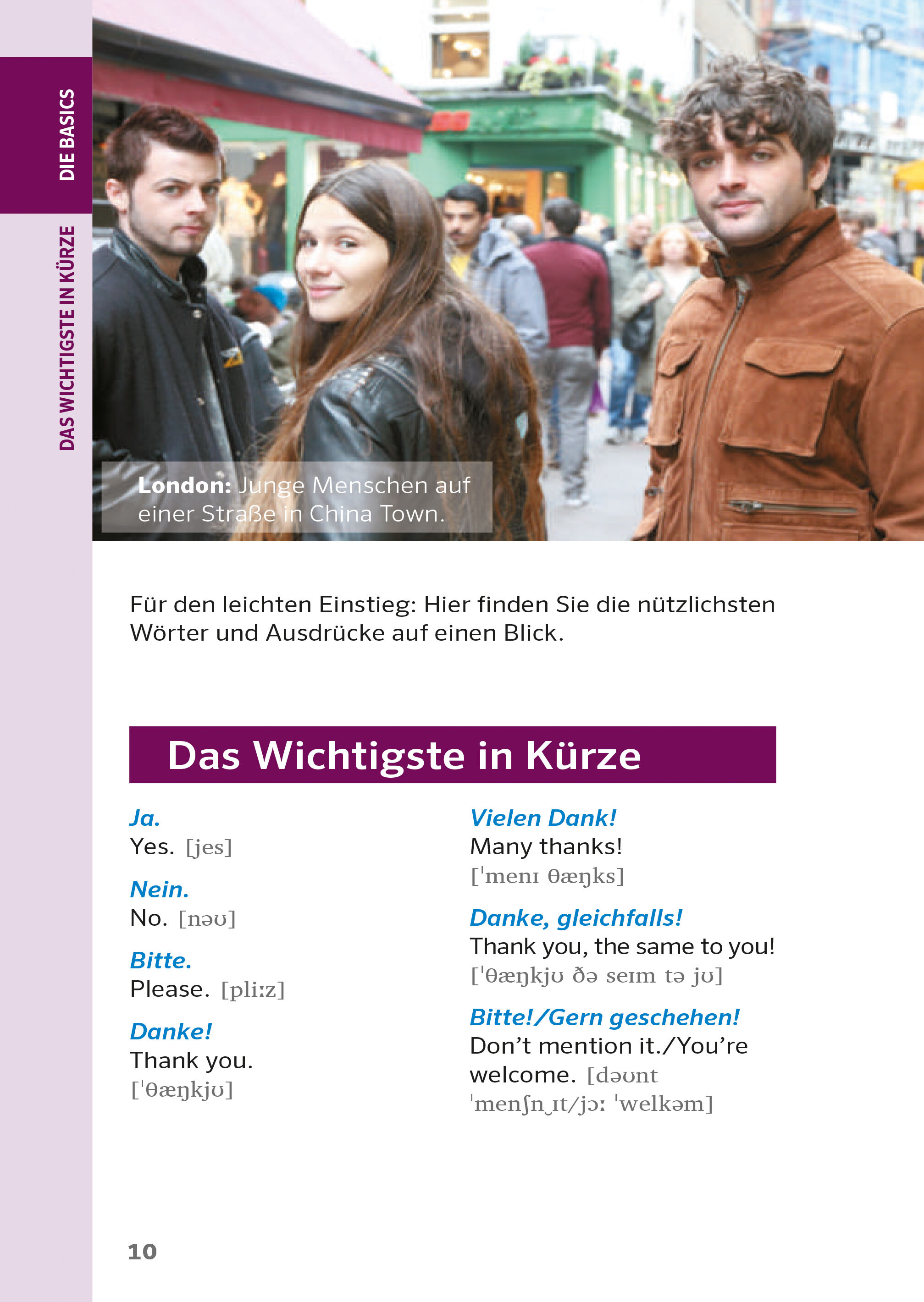 Das Wichtigste für die Reise Praktische Ringbindung ideal für unterwegs. Die wichtigsten Themen von Arztbesuch bis Speisekarte. Lautschrift zu jedem Satz für die richtige Aussprache. Mit Wörterbuch Englisch Deutsch / Deutsch Englisch schnell das richtige Wort...