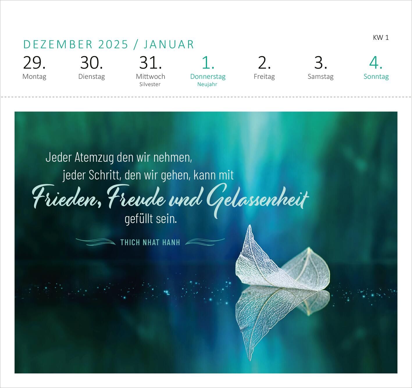 Tischkalender zum Aufstellen schenkt kleine Atempausen für mehr Gelassenheit im Alltag Ein tolles Geschenk für alle, die ihr Leben mit Leichtigkeit angehen möchten, Inspiration zur Entspannung und positive Affirmationen für ihren Alltag suchen. Der Kalender m...