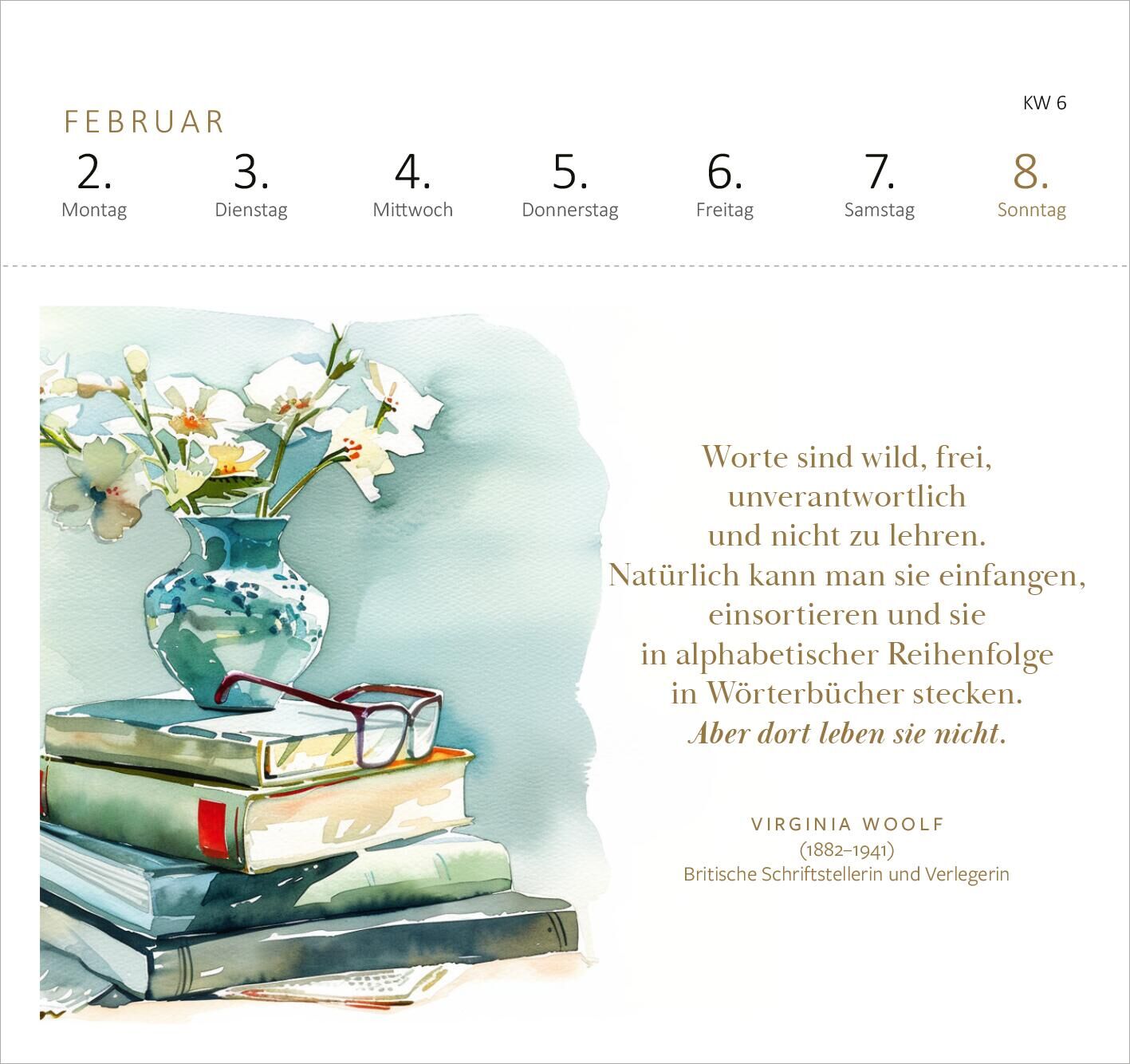 Tischkalender zum Aufstellen mit Zitaten von bekannten Autorinnen und Autoren Ein tolles Geschenk für alle, die sich gerne von literarischen Zitaten in ihrem Alltag inspirieren lassen: Der Literaturkalender 2026 mit Postkarten ist eine tägliche Inspirationsqu...