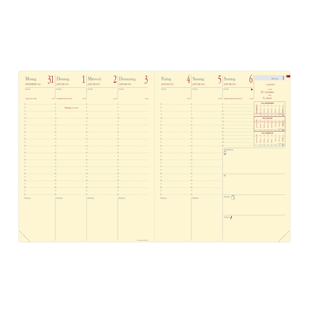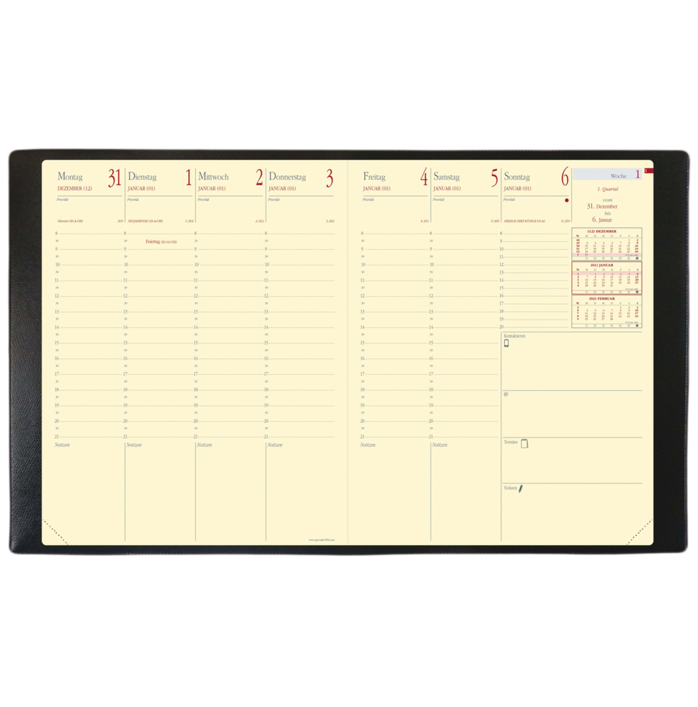 PRESIDENT PRESTIGE - Tischagenda Perfektes Zeitmanagement, weniger Stress - Die Quo Vadis Büroagenda ist ein praktischer Helfer zum Planen Ihres Alltags. Da jeweils eine Woche auf einer Doppelseite sichtbar ist, haben Sie Ihre Woche stets im Griff. 1 Woche / ...