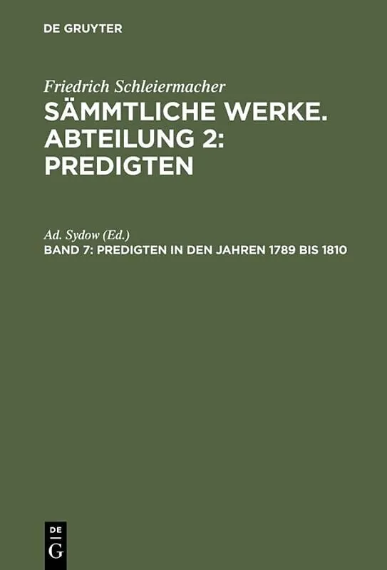 Keine ausführliche Beschreibung für "Predigten in den Jahren 1789 bis 1810" verfügbar. Klappentext Frontmatter -- Vorwort -- Inhaltsverzeichnis -- Erste Sammlung. Aus Schleiermachers Candidatei jähren 1789 bis 1794 -- I. Daß Christus allein unser Sel...
