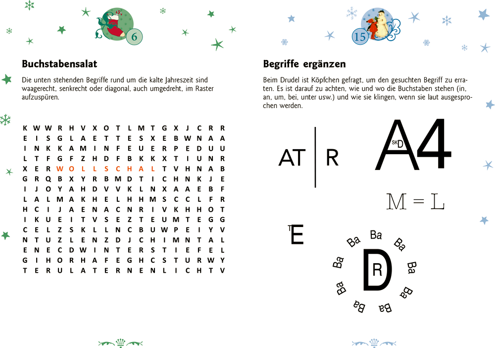 Mit 24 Winter-Weihnachtsrätseln durch den Advent: Sudoku, Teekesselchen, Buchstabensalat, Arukone, Binola, Zahlenkette, Labyrinth, Drudel u. v. m. Die Türchen auf dem Cover führen Tag für Tag zu einem neuen Adventsrätsel im Buch. So lässt sich die Wartezeit b...