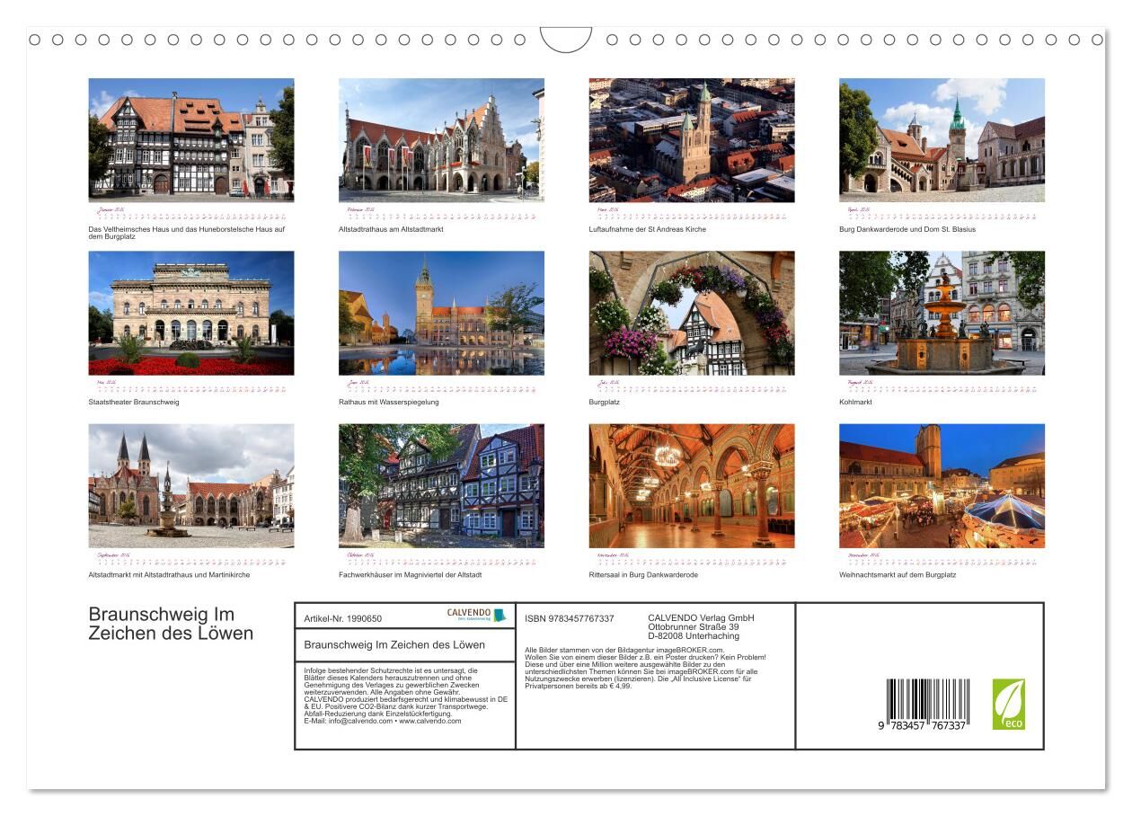 Am Burgplatz bietet die Burg von Dankwarderode Kunst aus dem Mittelalter. Das aus dem Hochmittelalter stammende Denkmal Braunschweiger Löwe und die romanische Kathedrale sind die Highlights Braunschweigs und werden in diesem Kalender vorgestellt.