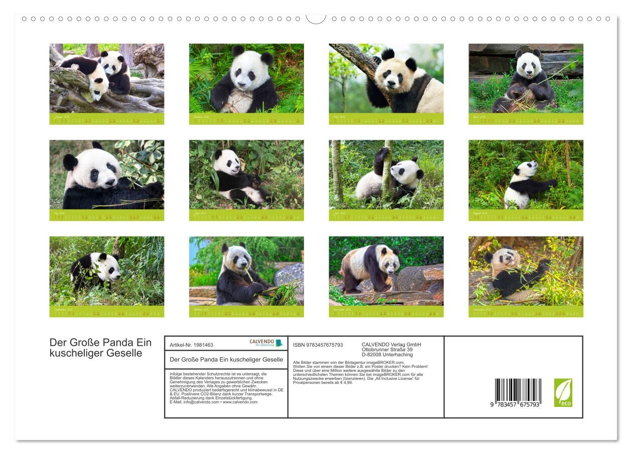 Der Große Panda ist in der freien Natur Asiens stark bedroht. Der Kalender vermittelt mit meisterhaften Bildern einen Eindruck von diesem sympathischen Tier.