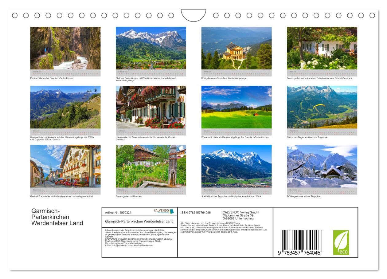 Der Kalender führt rund um Garmisch-Partenkirchen und zeigt die Höhepunkte des beliebten Ferienortes und die Schönheit des Werdenfelser Landes.