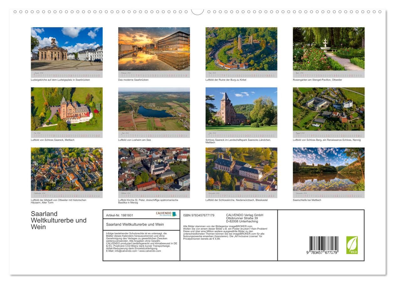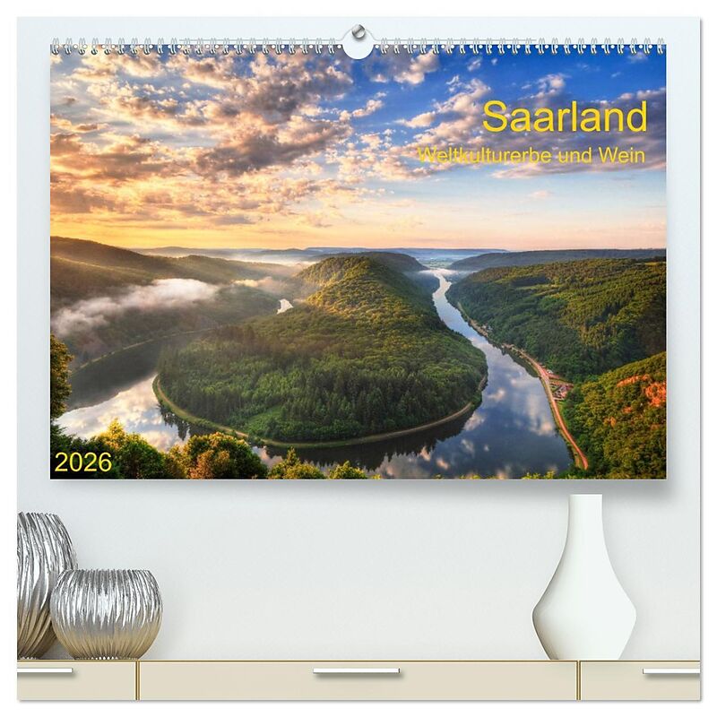 Saarland Weltkulturerbe und Wein (hochwertiger Premium Wandkalender 2026 DIN A2 quer), Kunstdruck in Hochglanz