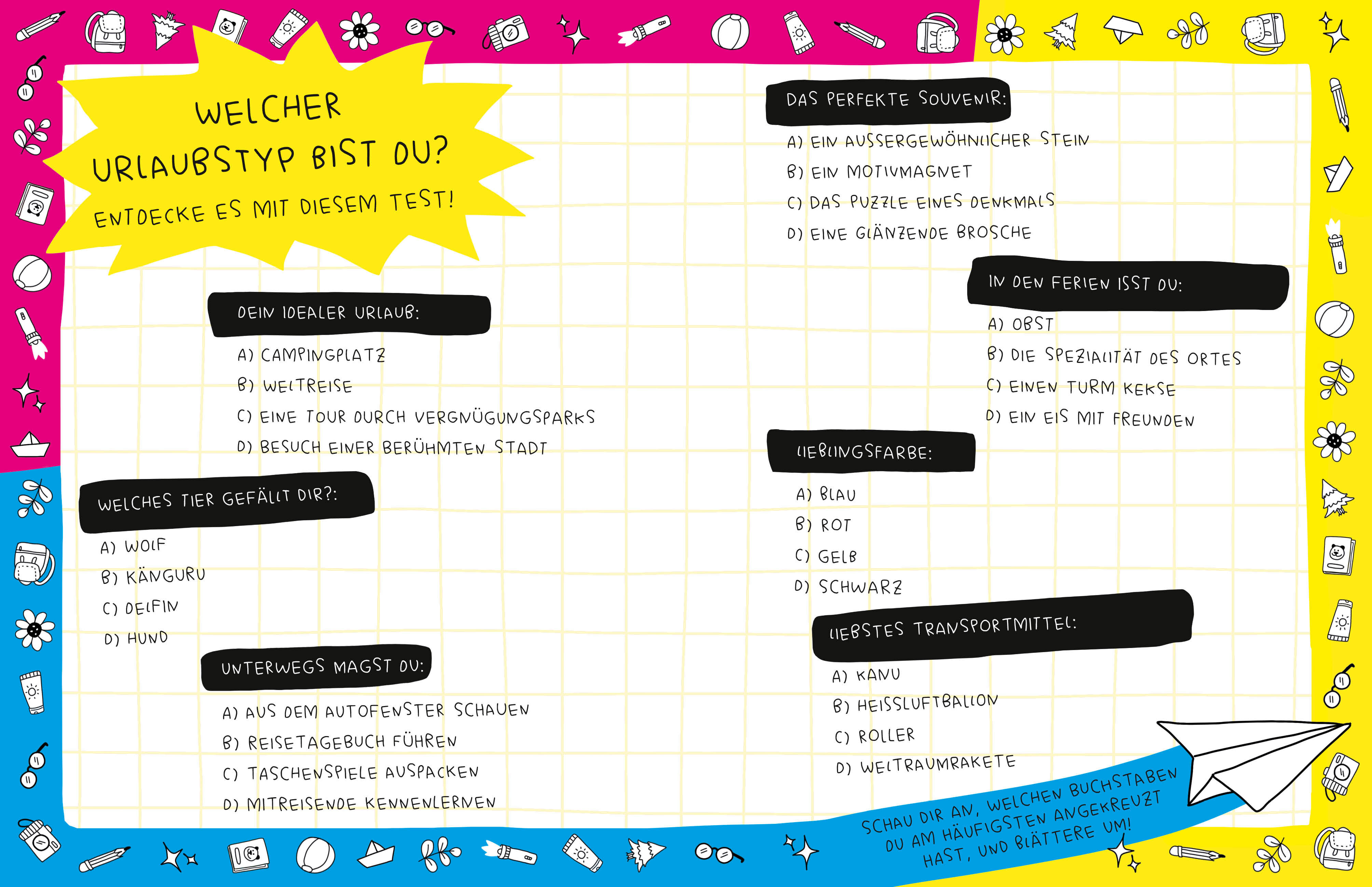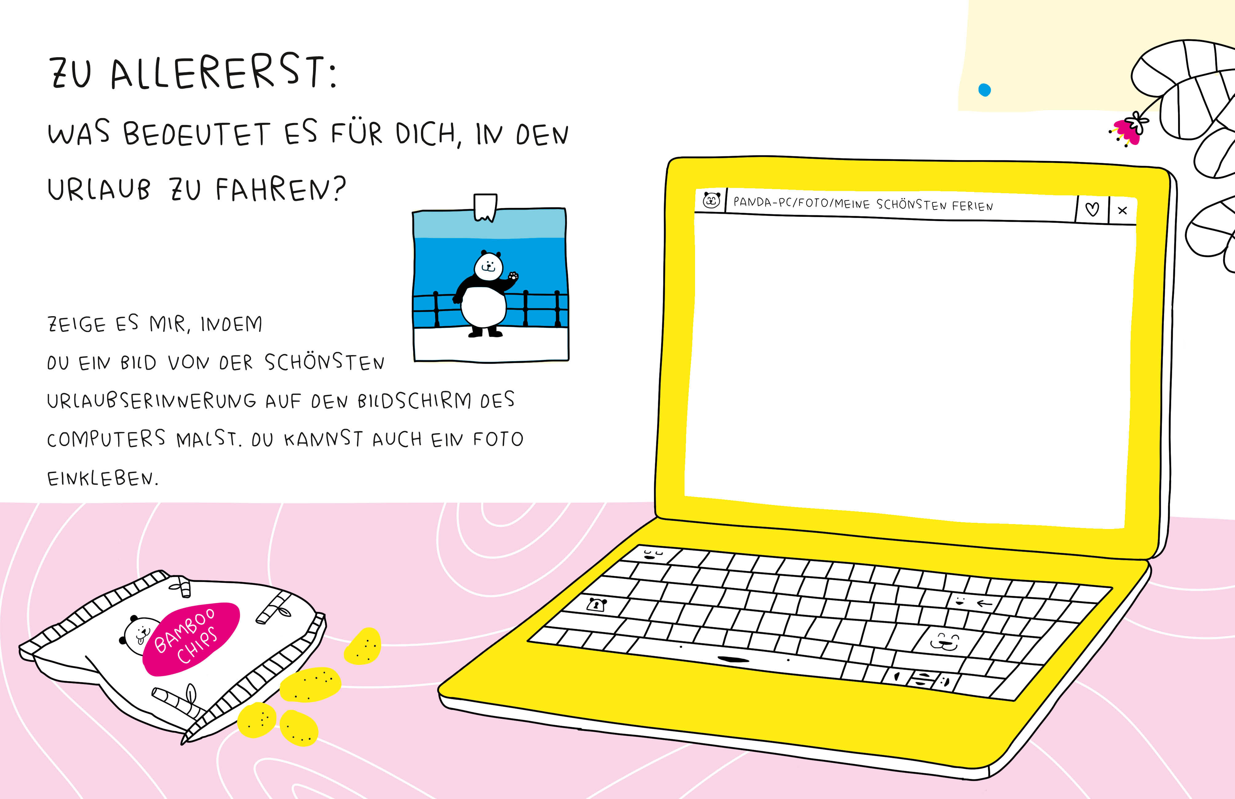 In diesem genial gestalteten Reisetagebuch kannst du deine Ferienerlebnisse aufschreiben, einkleben oder zeichnen. Dein kleiner Reisebegleiter ist ein niedlicher Panda, der dich dazu inspirieren möchte, deiner Kreativität freien Lauf zu lassen: Beantworte span...
