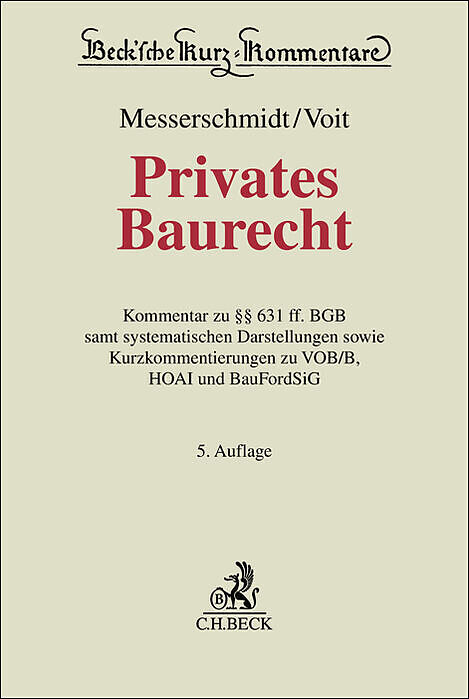 Neu aufgenommen wurde eine systematische Darstellung des Bauversicherungsrechts (u.a. mit Abschnitten zur Haftpflicht und Bauleistungsversicherung); die Ausführungen zu Verträgen mit Verbraucherbeteiligung wurden umfassender ausgestaltet.