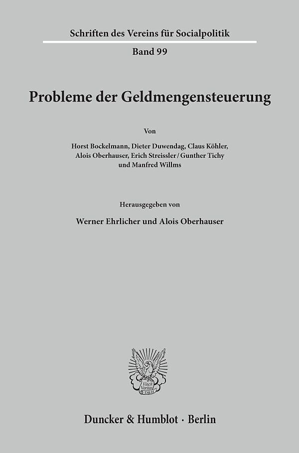Klappentext Für diesen Titel ist noch kein Beschreibungstext vorhanden. Inhalt Inhalt: C. Köhler, Probleme der Zentralbankgeldmengensteuerung - H. Bockelmann, "Streitfragen zur Kontrolle der Geldschöpfung durch die Notenbank" - D. Duwendag, Alternative Ansätze...