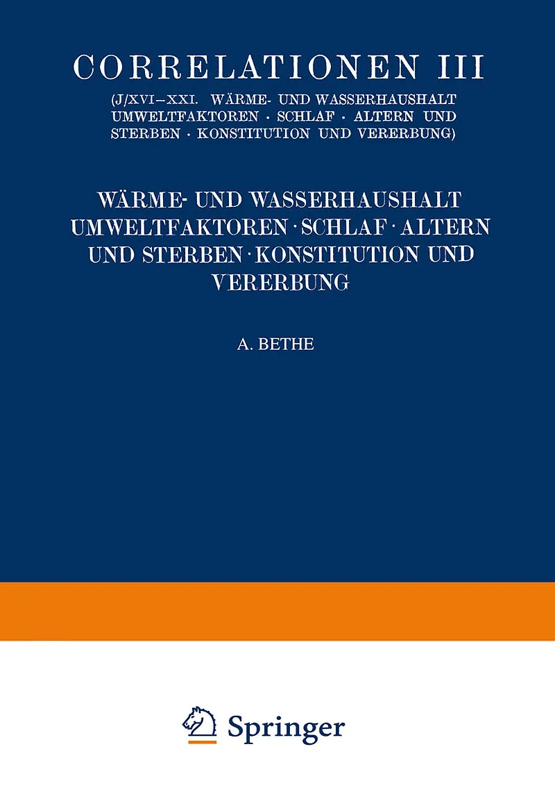Correlationen III. Wärme- und Wasserhaushalt. Umwelt- faktoren. Schlaf. Altern und Sterben. Konstitution und Vererbung