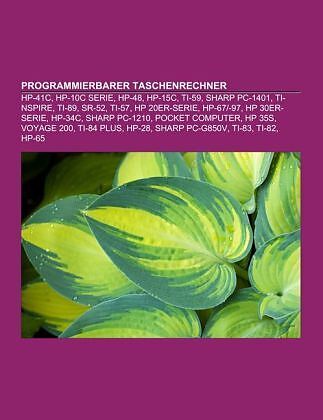 Quelle: Wikipedia. Seiten: 41. Kapitel: HP-41C, HP-10C Serie, HP-48, HP-15C, TI-59, Sharp PC-1401, TI-Nspire, TI-89, SR-52, TI-57, HP 20er-Serie, HP-67/-97, HP 30er-Serie, HP-34C, Sharp PC-1210, Pocket Computer, HP 35s, Voyage 200, TI-84 Plus, HP-28, Sharp PC-...Quelle: Wikipedia. Seiten: 41. Kapitel: HP-41C, HP-10C Serie, HP-48, HP-15C, TI-59, Sharp PC-1401, TI-Nspire, TI-89, SR-52, TI-57, HP 20er-Serie, HP-67/-97, HP 30er-Serie, HP-34C, Sharp PC-1210, Pocket Computer, HP 35s, Voyage 200, TI-84 Plus, HP-28, Sharp PC-G850V, TI-83, TI-82, HP-65, HP-12C, HP-32S, Sharp PC-1403, Casio PB-1000, TI-81, Sharp PC-1500, ClassPad 300, HP-25, TI-92, TI-85, TI-86, HP-71B. Auszug: Der HP-41C und die weiterentwickelten Modelle HP-41CV und CX waren programmierbare Taschenrechner der Firma Hewlett-Packard. Das erste Modell der 41er-Serie kam 1979 auf den Markt, 1990 endete die Produktion der Baureihe. Die Rechner entwickelten sich trotz ihrer relativ hohen Preise (ab 750 DM) schnell zu einem wichtigen Hilfsmittel für Wissenschaftler, Ingenieure und Studenten. Sie boten neben umfangreichen Programmierungs- und Erweiterungsmöglichkeiten vor allem als erste Geräte dieser Art ein alphanumerisches Display mit im Vergleich zu den damals üblichen LED-Anzeigen energiesparenden Flüssigkristallen. Die Taschenrechner waren modular erweiterbar mit zusätzlichem Daten-/Programmspeicher, Programmmodulen sowie diversen Peripheriegeräten wie Magnetkartenleser, einem speziellen Lesegerät für Barcodes, um Programme und Daten einzulesen, Drucker und Kassettenlaufwerk. Die späteren Modelle HP-41CV und HP-41CX waren besser ausgestattet und eigneten sich auch zur automatischen Steuerung und Messwerterfassung bei kleineren Laborversuchen mittels IEC-Bus, was häufig genutzt wurde. Hauptunterscheidungsmerkmale gegenüber der Konkurrenz von Texas Instruments (speziell dem TI-59) sowie gegenüber Casio-Geräten waren die großen Erweiterungsmöglichkeiten und die HP-typische Eingabe mittels der Umgekehrten Polnischen Notation. Nachfolger waren der funktional sehr ähnliche HP-42S und die deutlich weiterentwickelten Modelle HP-28 und HP-48. HP-41CX mit Magnetkartenleser (das schwarze Kästchen oberhalb der LC-Anzeige) und ThermodruckerDer HP-41C war der erste Taschenrechner mit frei belegbaren Tasten. Da die Fülle der Funktionen nicht mehr sinnvoll auf der Tastatur untergebracht werden konnte, wurde folgendes dreistufiges Konzept verwendet: Teilweise wurden bei Erweiterungsmodulen Schablonen als Tastaturoverlays mitgeliefert. Die alphanumerischen Fähigkeiten können auch für die Programmierung (in FOCAL) genutzt werden, sodass Ein- und Ausgaben in Klartext kommentiert werden können