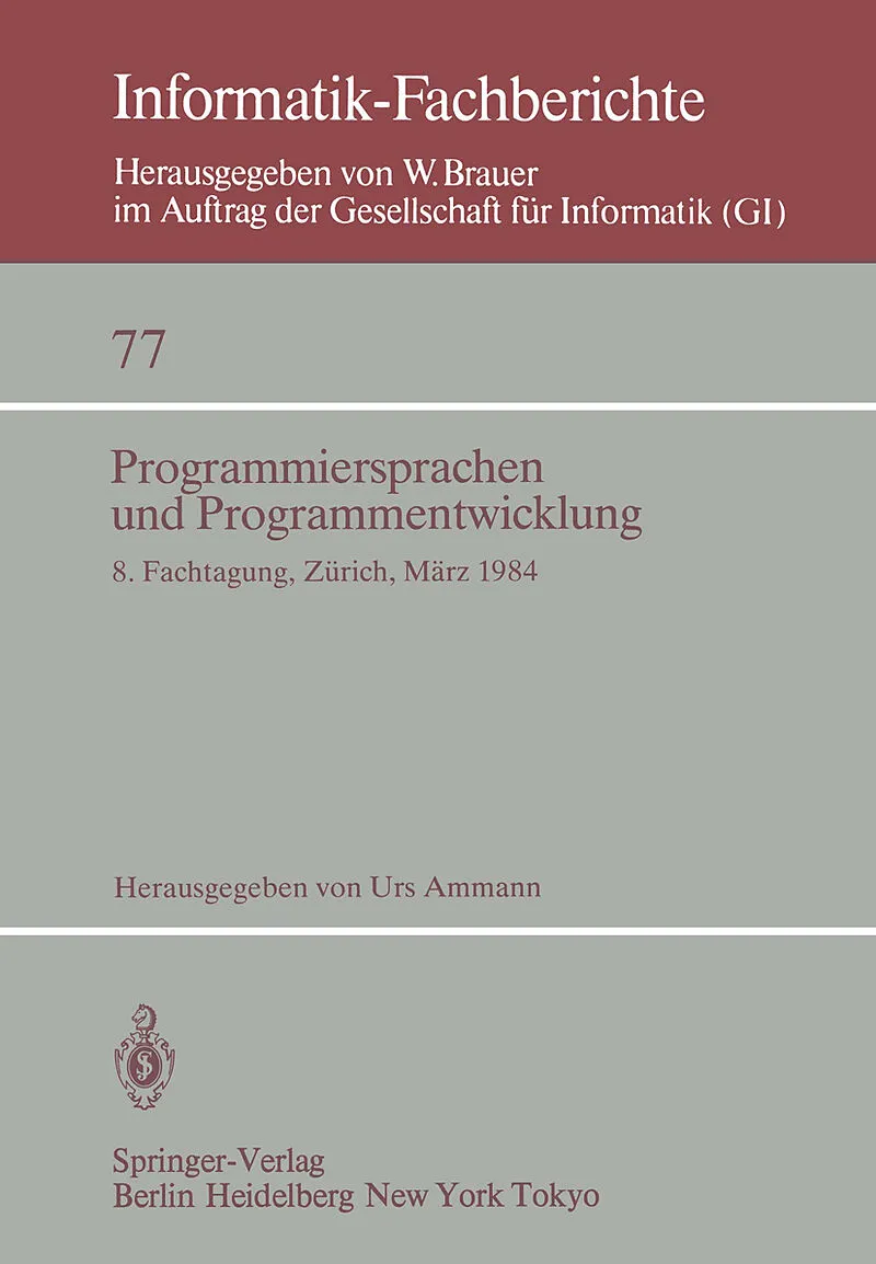 Der Fachausschuss "Programmiersprachen und Programmentwicklung" der Gesellschaft für Informatik e. V. veranstaltet am 8. und 9. März 1984 seine 8. Fachtagung. Erstmals wird diese im zweijährigen Turnus durchgeführte Veranstaltung in Zusammenarbeit mi...