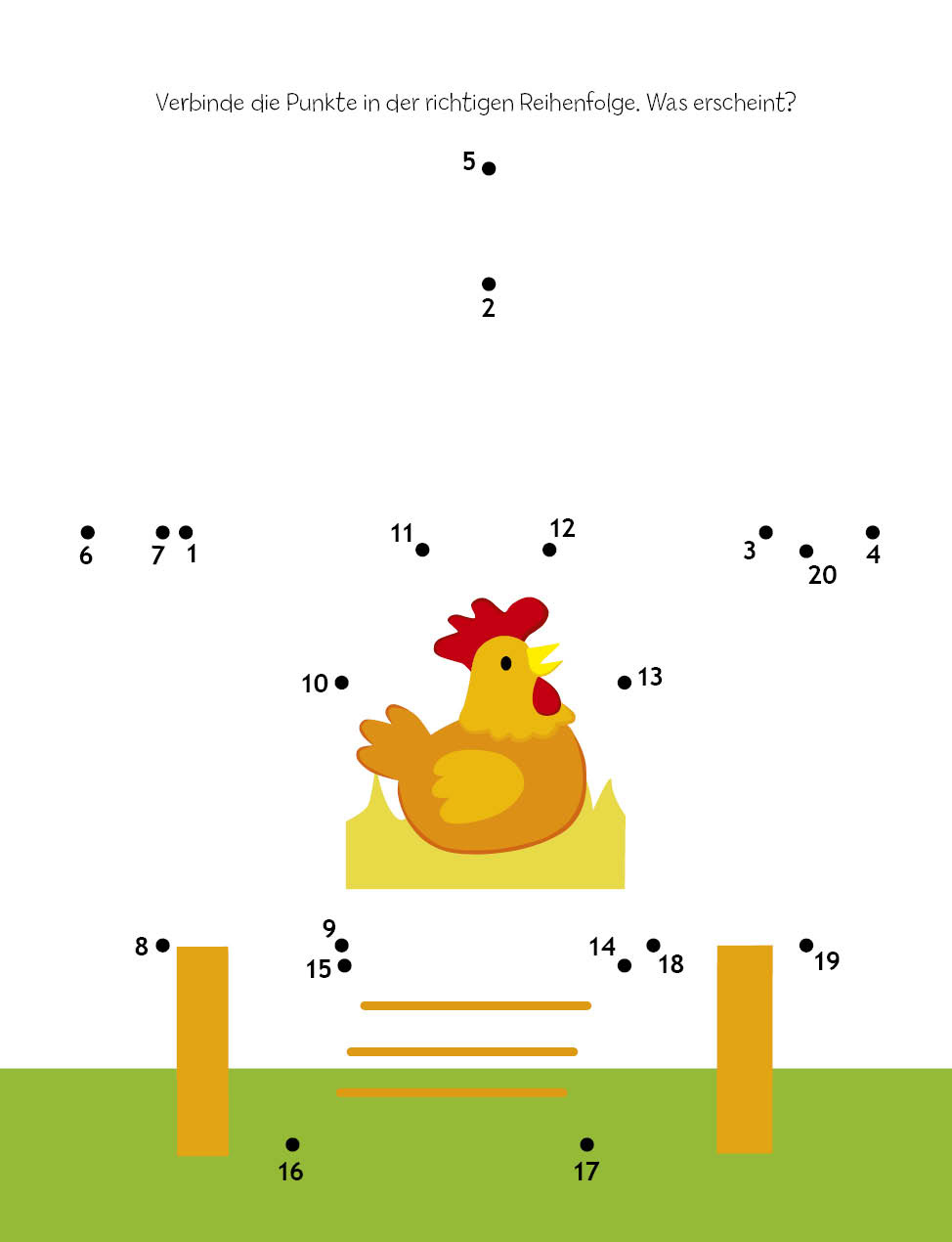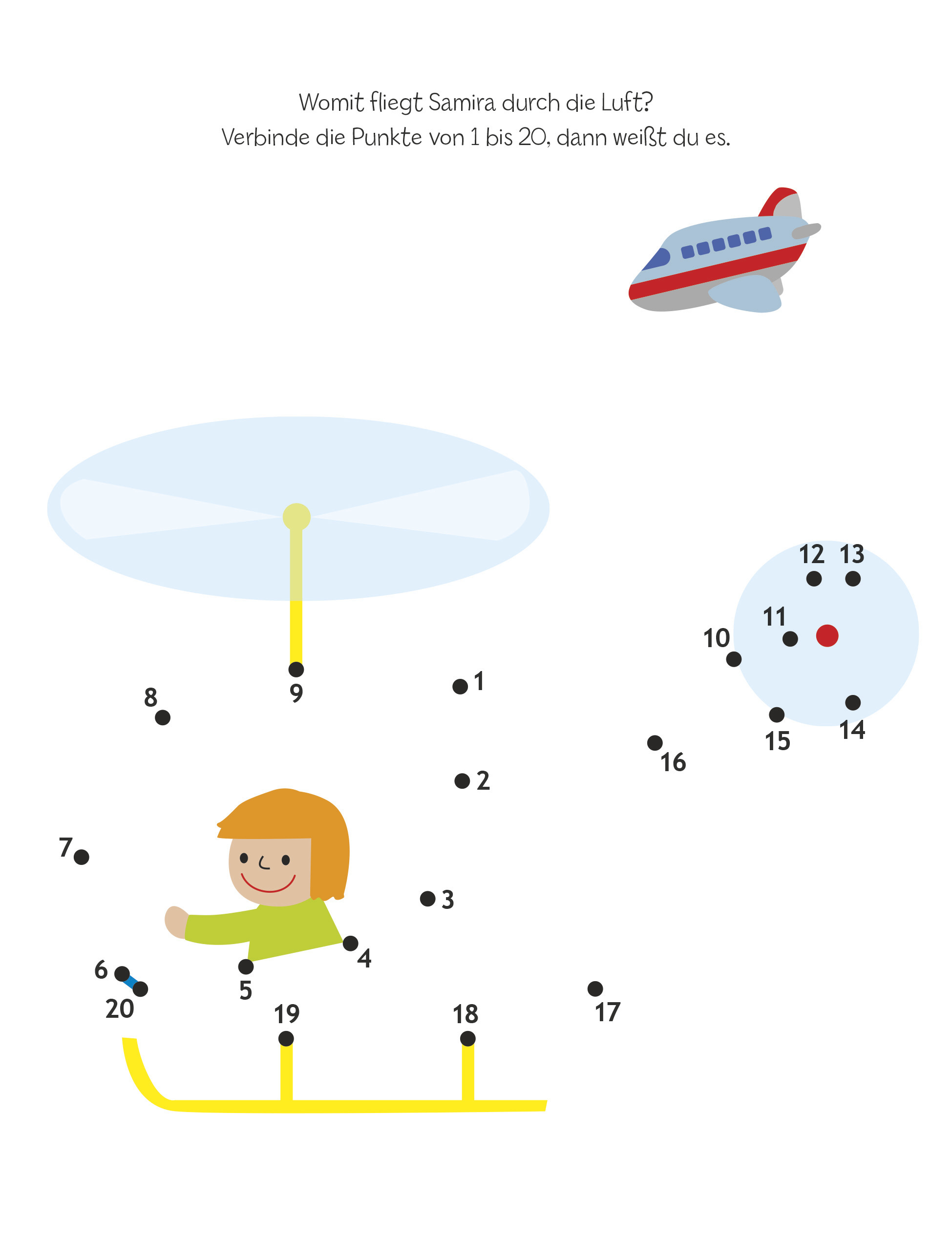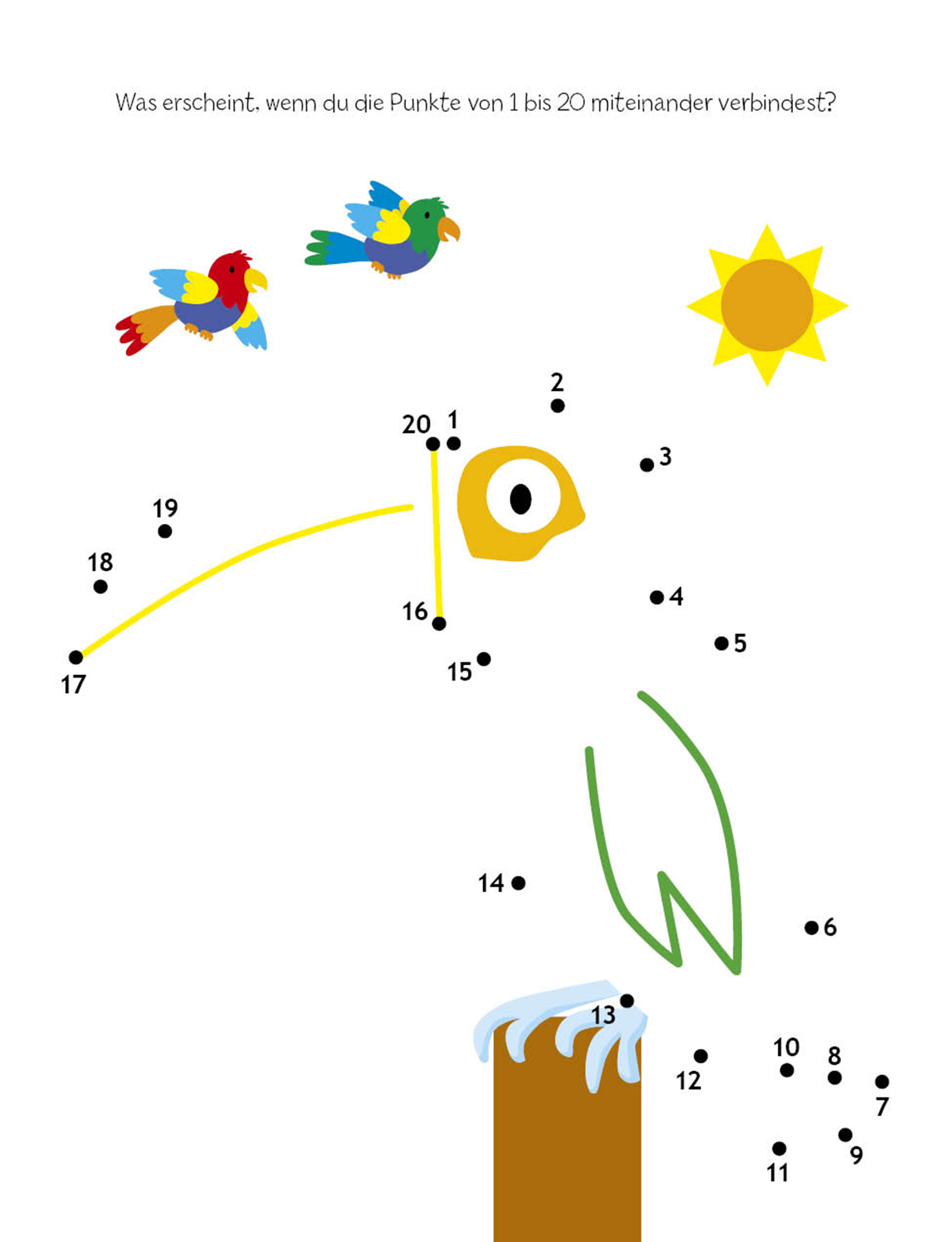 Kannst du schon von 1 bis 20 zählen? Dann zeichne alle Bilder fertig, indem du die Zahlen miteinander verbindest. Was für Dinge sich wohl hinter den Punkten verstecken? Doch es warten noch viel mehr Spiele auf dich. Fahre Linien nach, löse Schwungübungen und m...