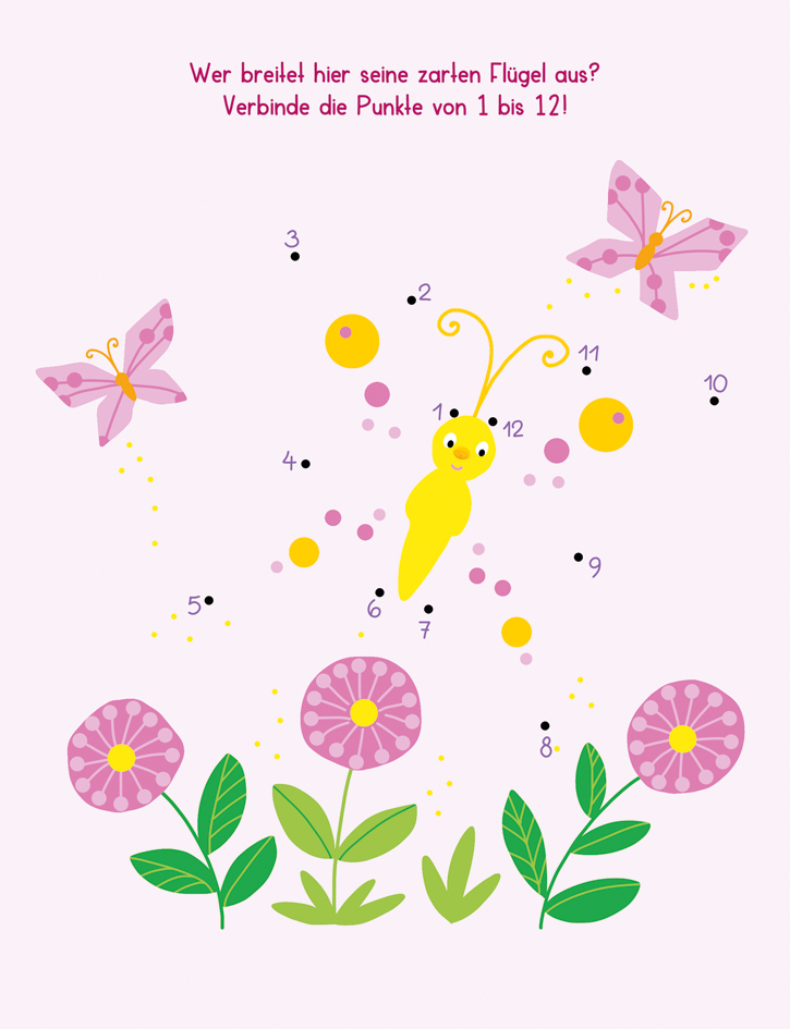 Mit abwechslungsreiche Punkt-zu-Punkt-Aufgaben im modernen Layout nähern sich Kinder spielerisch den Zahlen von 1 bis 12. Weitere Rätselarten wie Unterschiede finden, Wege durch Labyrinthe suchen, Schwungübungen nachspuren oder Motive in den richtigen Farben a...