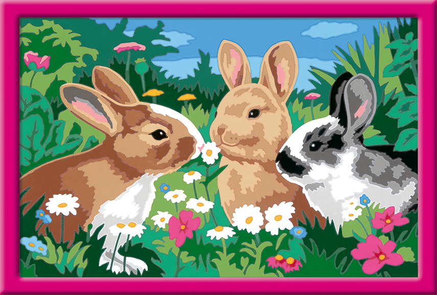 Farbige Motivlinien: Größerer Malspaß & ein schöneres Ergebnis! Dank der farbigen Motivlinien, können die Kinder das ganze Motiv Putzige Häschen und die Farben schneller erkennen. Der Pinsel hat eine gute Führung und so entsteht ein perfektes Bild. Die sch...