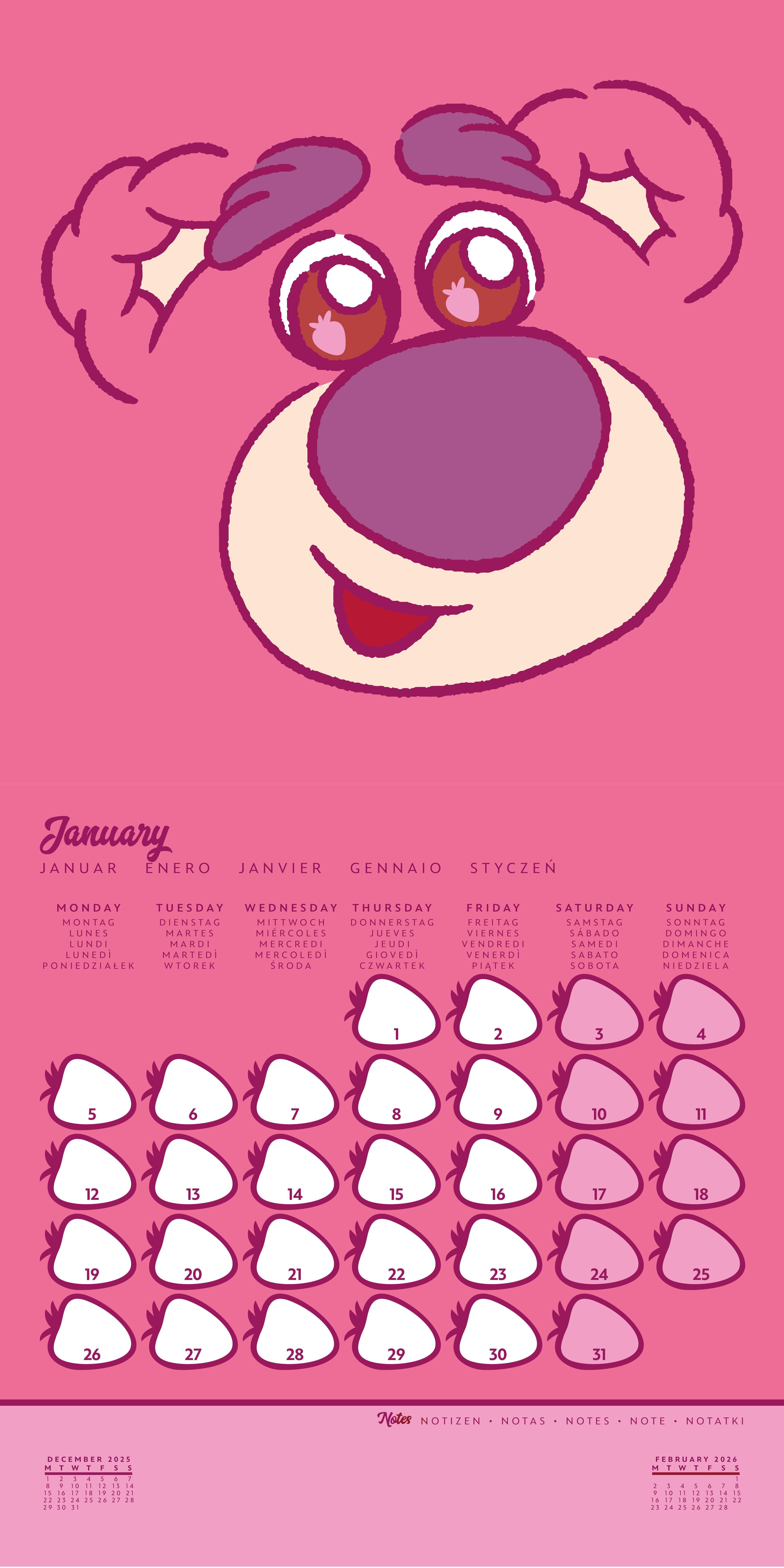 Der LOTSO 2026 Broschürenkalender von Pyramid Europe (30 × 30 cm, aufgeklappt 30 × 60 cm) bringt den beliebten rosa Teddybären aus Toy Story 3 direkt an deine Wand. Mit 12 frechen und verspielten Motiven zeigt der Kalender Lotso von seiner charmanten wie auch...