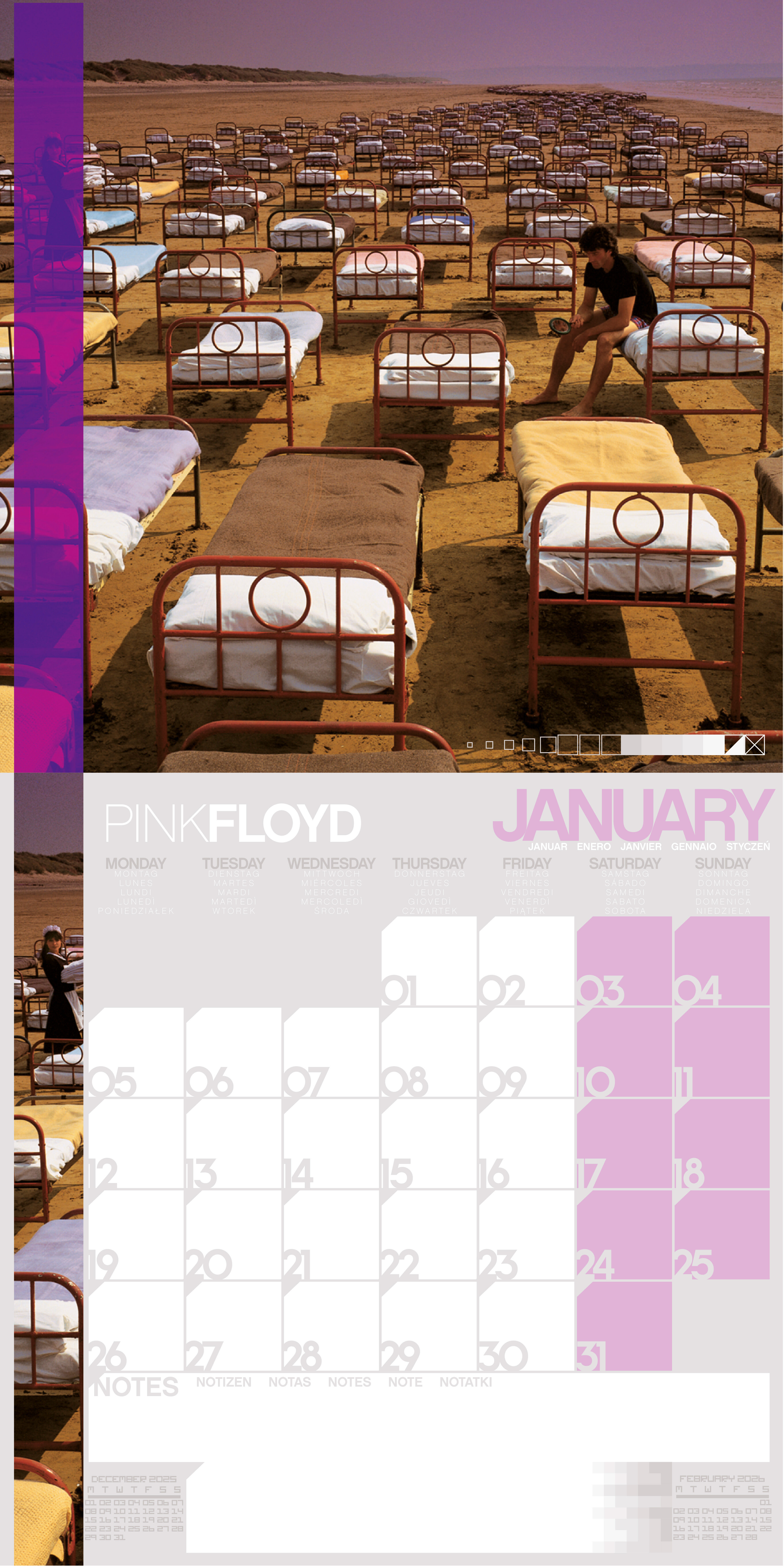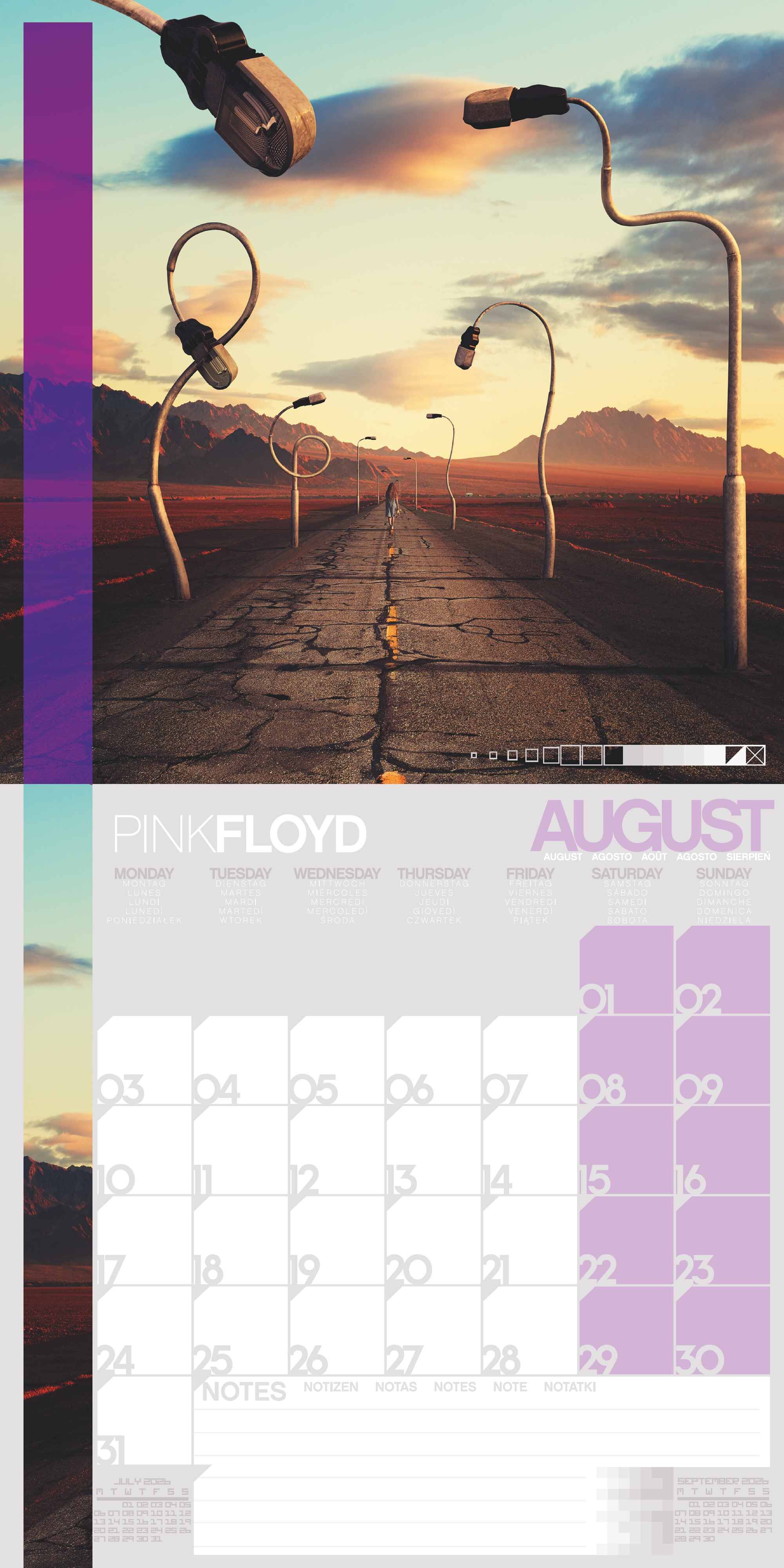 Der PINK FLOYD 2026 Broschürenkalender von Pyramid Europe (30 × 30 cm, aufgeklappt 30 × 60 cm) ist eine Hommage an eine der größten Rockbands aller Zeiten. Mit 12 legendären Motiven von The Dark Side of the Moon über Wish You Were Here bis hin zu weiteren iko...