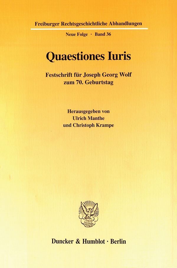 Nach dem Studium der Rechtswissenschaft wurde Joseph Georg Wolf bei Franz Wieacker in Göttingen mit einer Arbeit über den »Error im Römischen Privatrecht« promoviert und mit »Causa stipulationis« habilitiert; beide Werke haben die Forschung über die Dogmatik d...