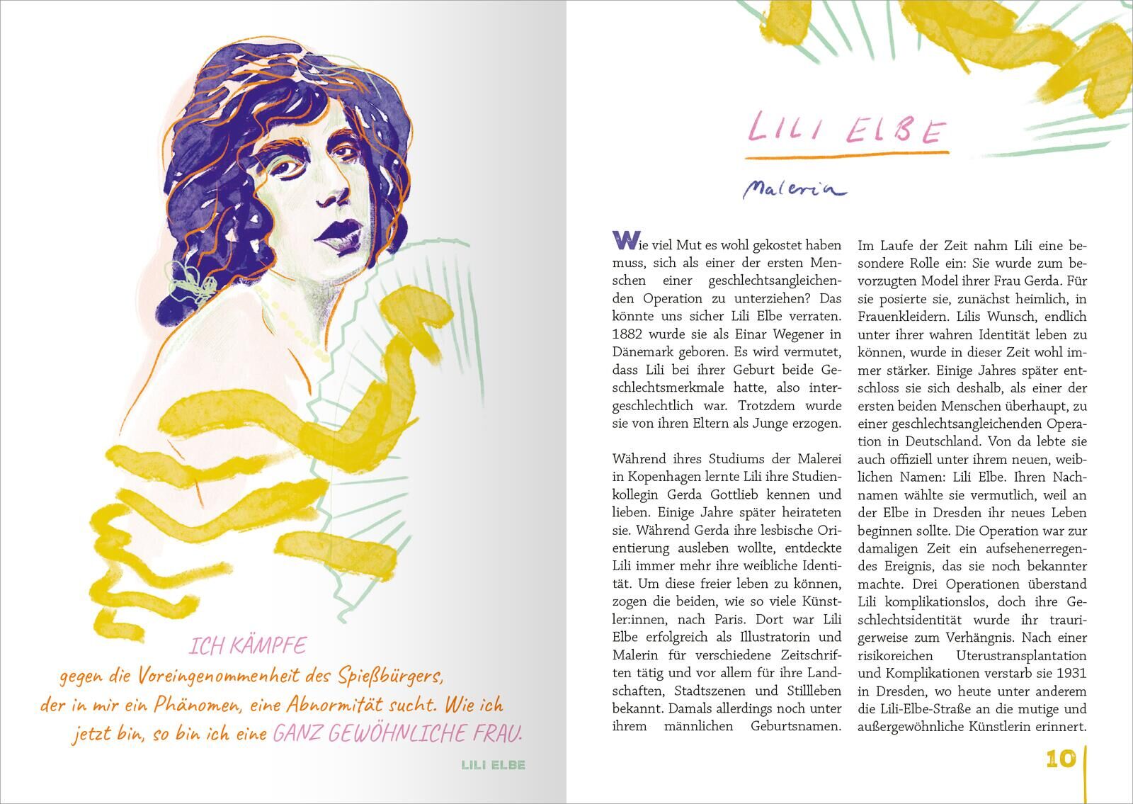 Queer was bedeutet das überhaupt? In diesem Buch wird deutlich, dass Queerness keine Erfindung des 21. Jahrhunderts ist. Von Virginia Woolf über Rosa von Praunheim bis hin zu Elliot Page: Jede Person hat eine inspirierende Lebensgeschichte, die es wert ist, erzählt zu werden. Wunderschön illustriert von Sarah von der Heide lädt dieses Buch zum Schmökern ein und zeigt, in wie vielen bunten Farben Queerness zum Ausdruck kommt. Neben den Biografien finden sich hier interessante Fakten über die LGBTQIA+-Bewegung und ihre Geschichte, die zeigen, wie bunt unsere Gesellschaft tatsächlich ist, damals wie heute.
