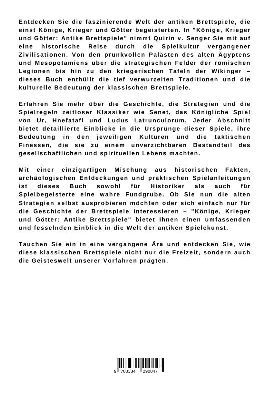 Entdecken Sie die faszinierende Welt der antiken Brettspiele, die einst Könige, Krieger und Götter begeisterten. In "Könige, Krieger und Götter: Antike Brettspiele" nimmt Quirin v. Senger Sie mit auf eine historische Reise durch die Spielkultur vergangener Ziv...